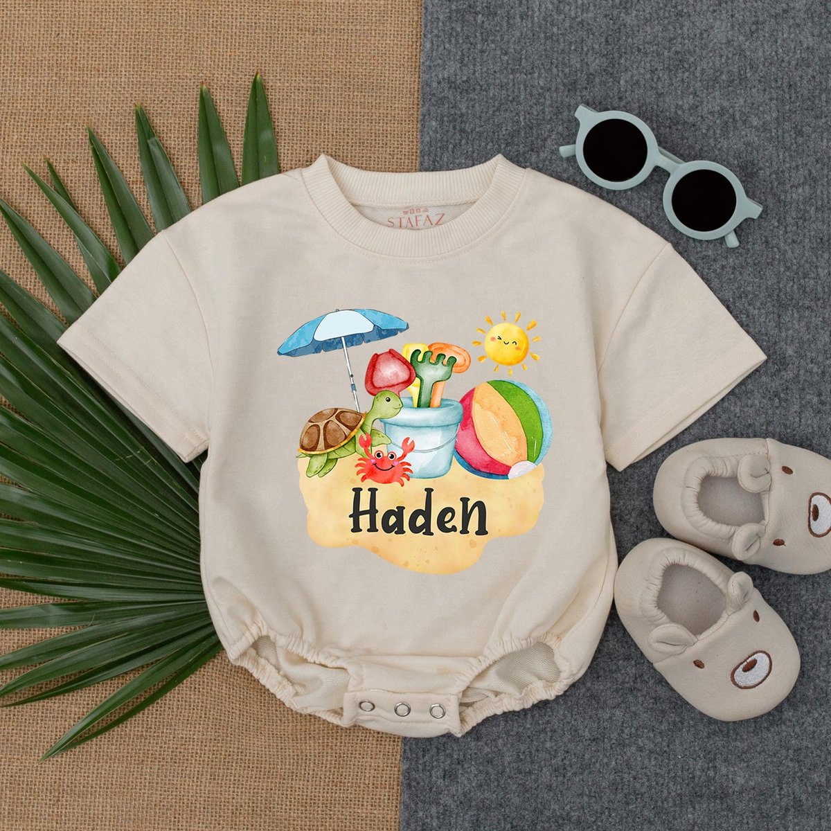 Custom Name Baby Bubble Romper Ocean Turtle Sun Summer Outfit Short Sleeve Baby Romper Personalized 431