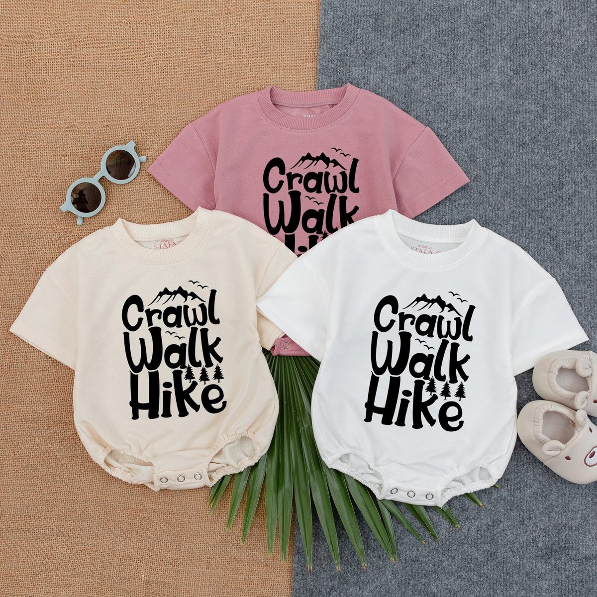 Crawl Walk Hike T shirt Bubble Romper Baby Hiking Outfit Adventure Bodysuit for Baby Outdoorsy Baby 188