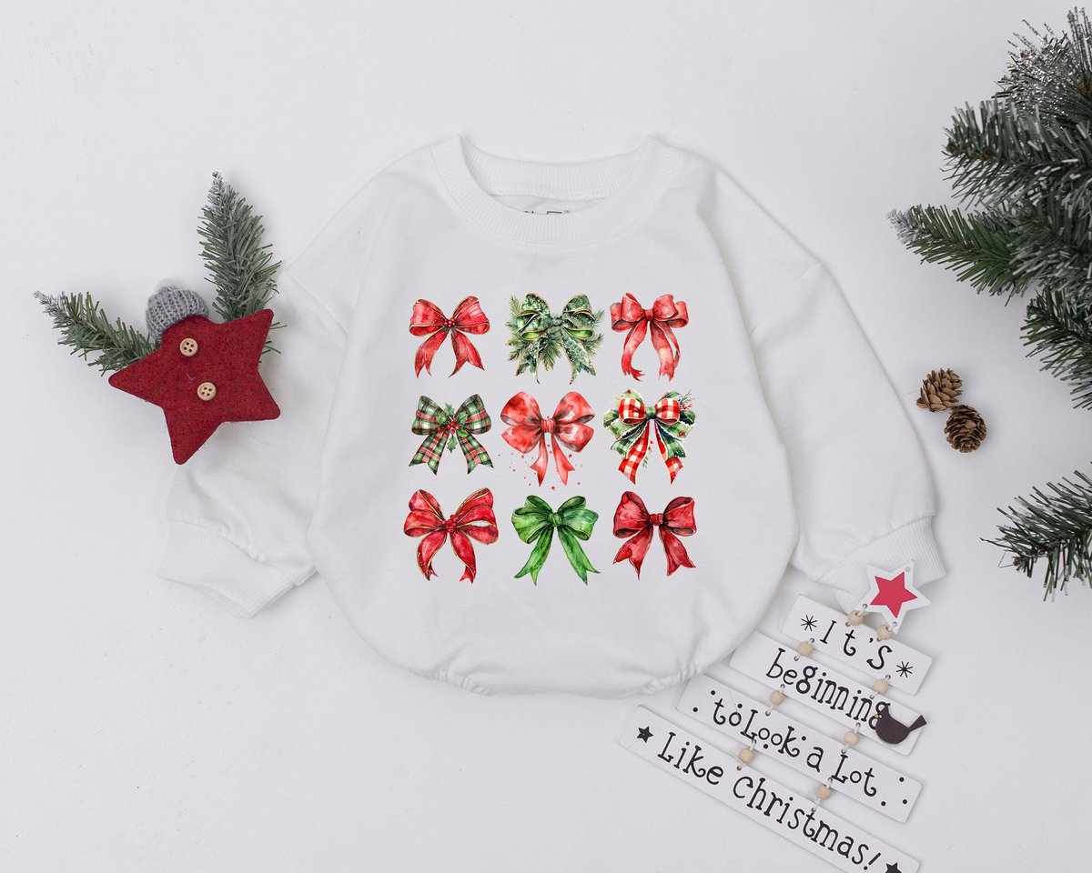 Custom Design Christmas Girly Bow Romper Baby Girl Clothes Toddler SweatshirtBaby Bodysuit Baby Show