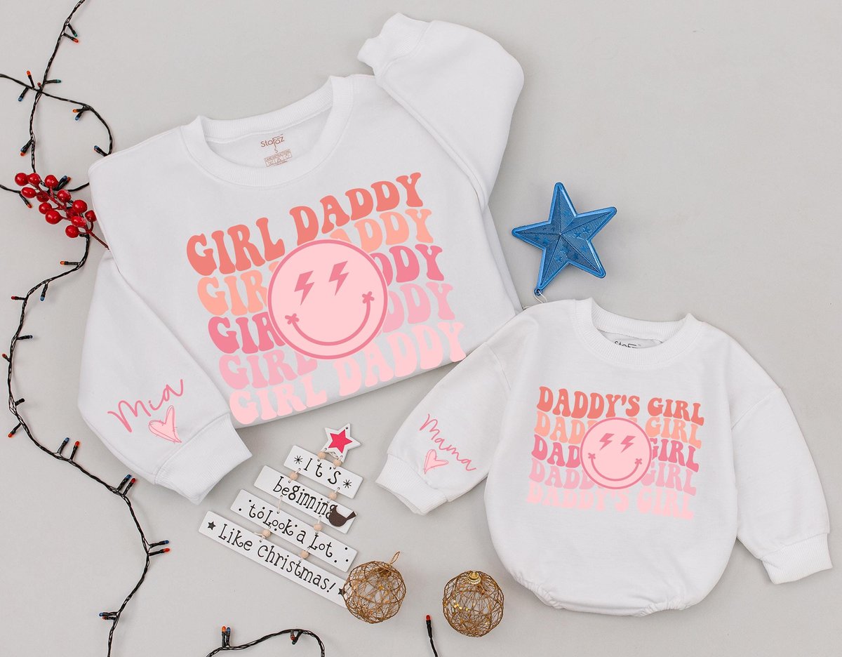 Custom Girl daddy and daddy’s girl Sweatshirt Baby romper kids Smiley face Mama Sweater Gift for He 182