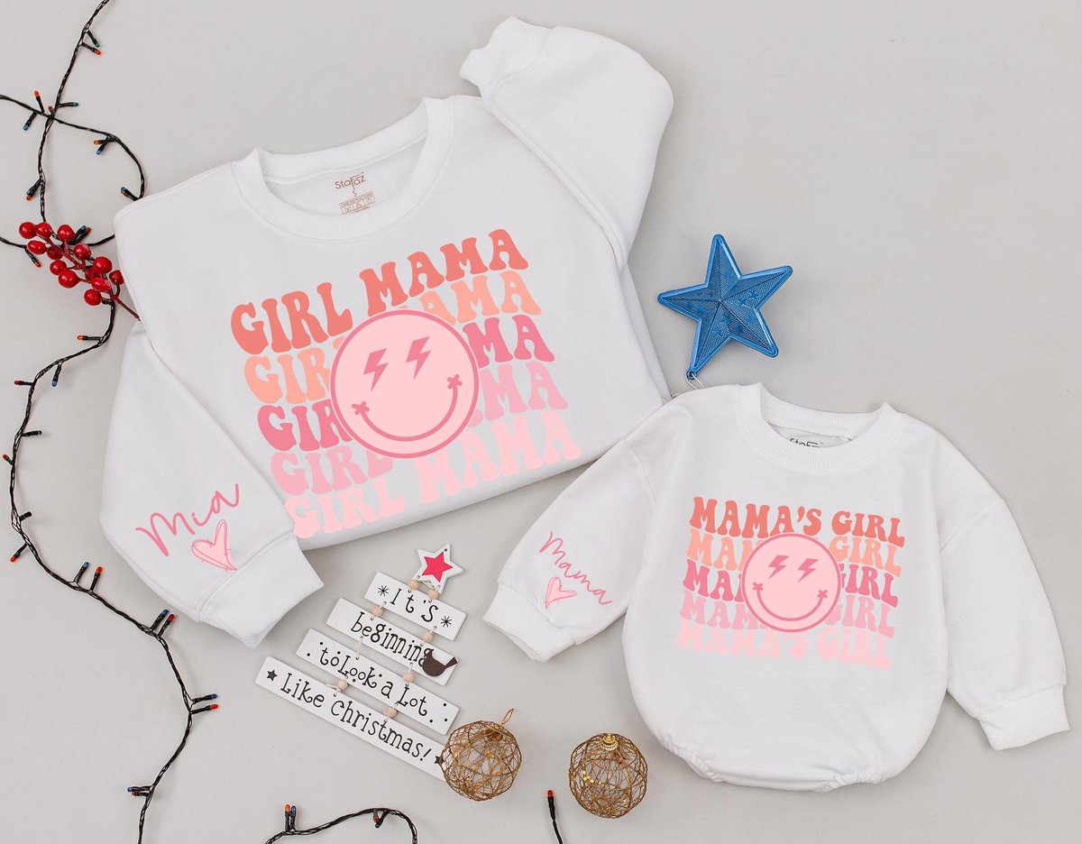 Custom Girl mama and mama’s girl Sweatshirt Baby romper kid Smiley face Mama Sweatshirt Gift for He 182