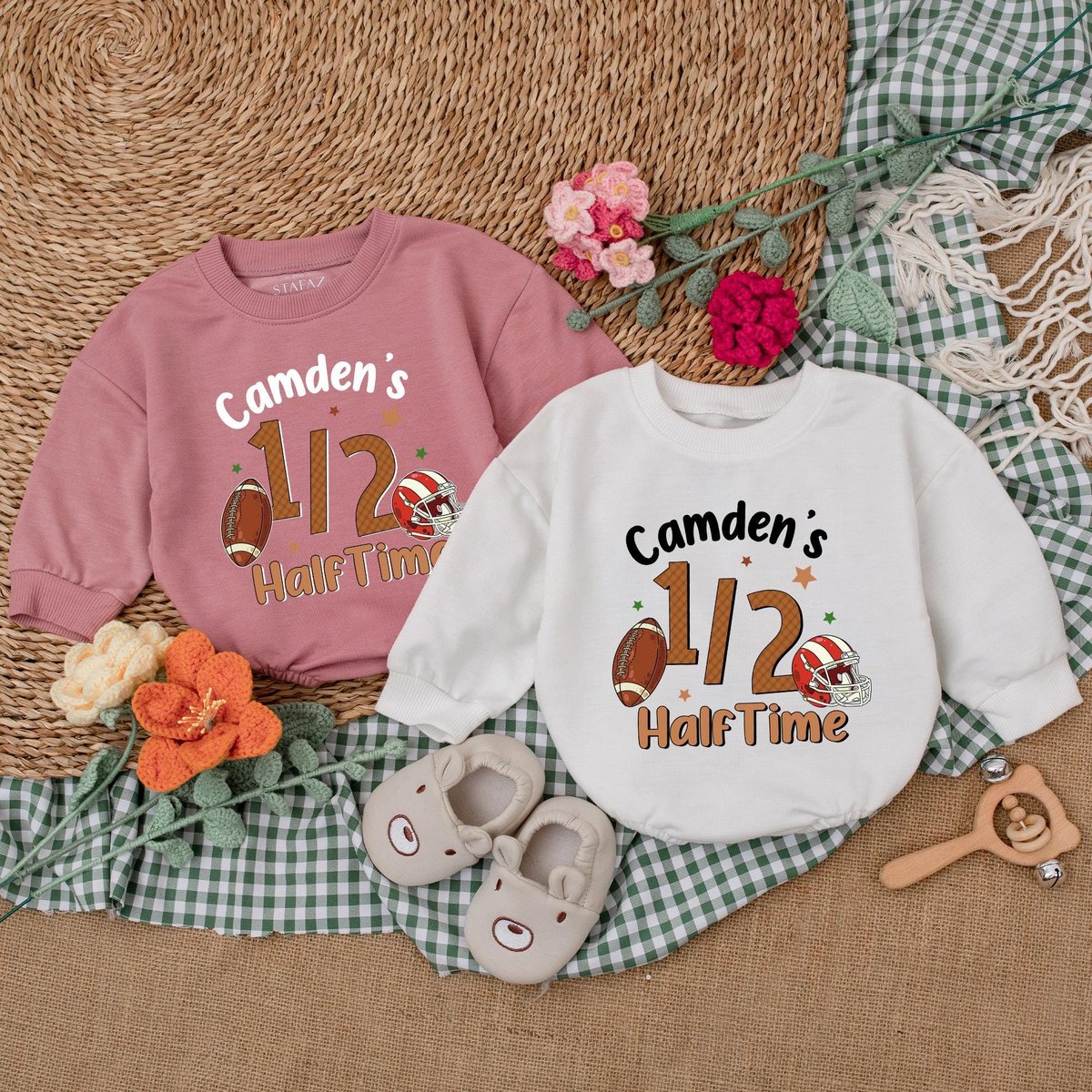 Custom Half Way To One Football Romper Half Birthday Boy Bodysuit 12 Birthday Outfit Football Half B 185