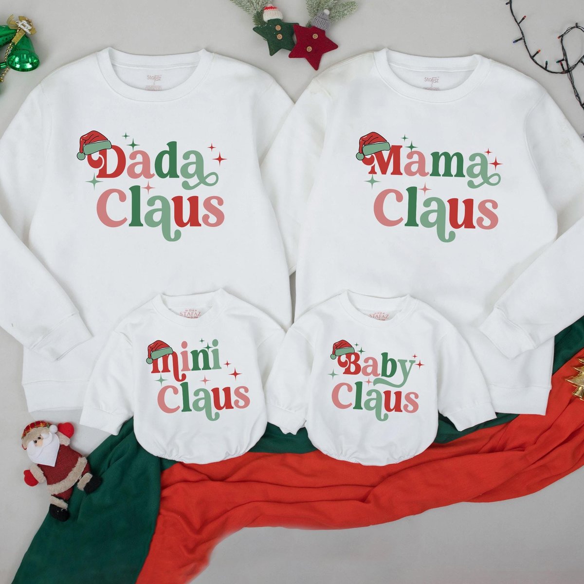 Custom Mama And Mini Claus Sweatshirt Family Matching Sweater Mama dada and Mini Retro Christmas Out 436