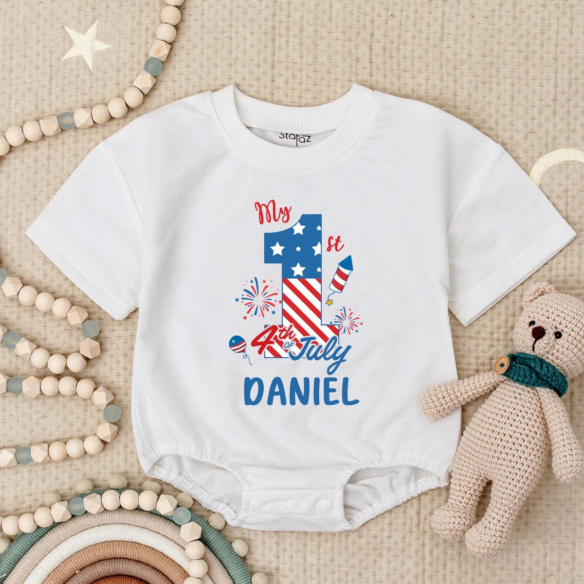 Custom Name 1st Fourth of July Baby Romper First Independence Day Baby Bodysuit July 4th Red White B