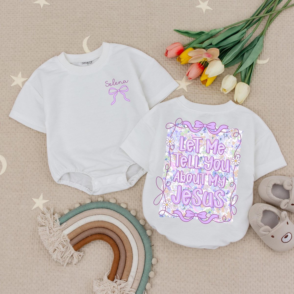 Custom Name Christian Purple Bow Bubble Romper Bow Christian Mama Babysuit Let Me Tell You About My