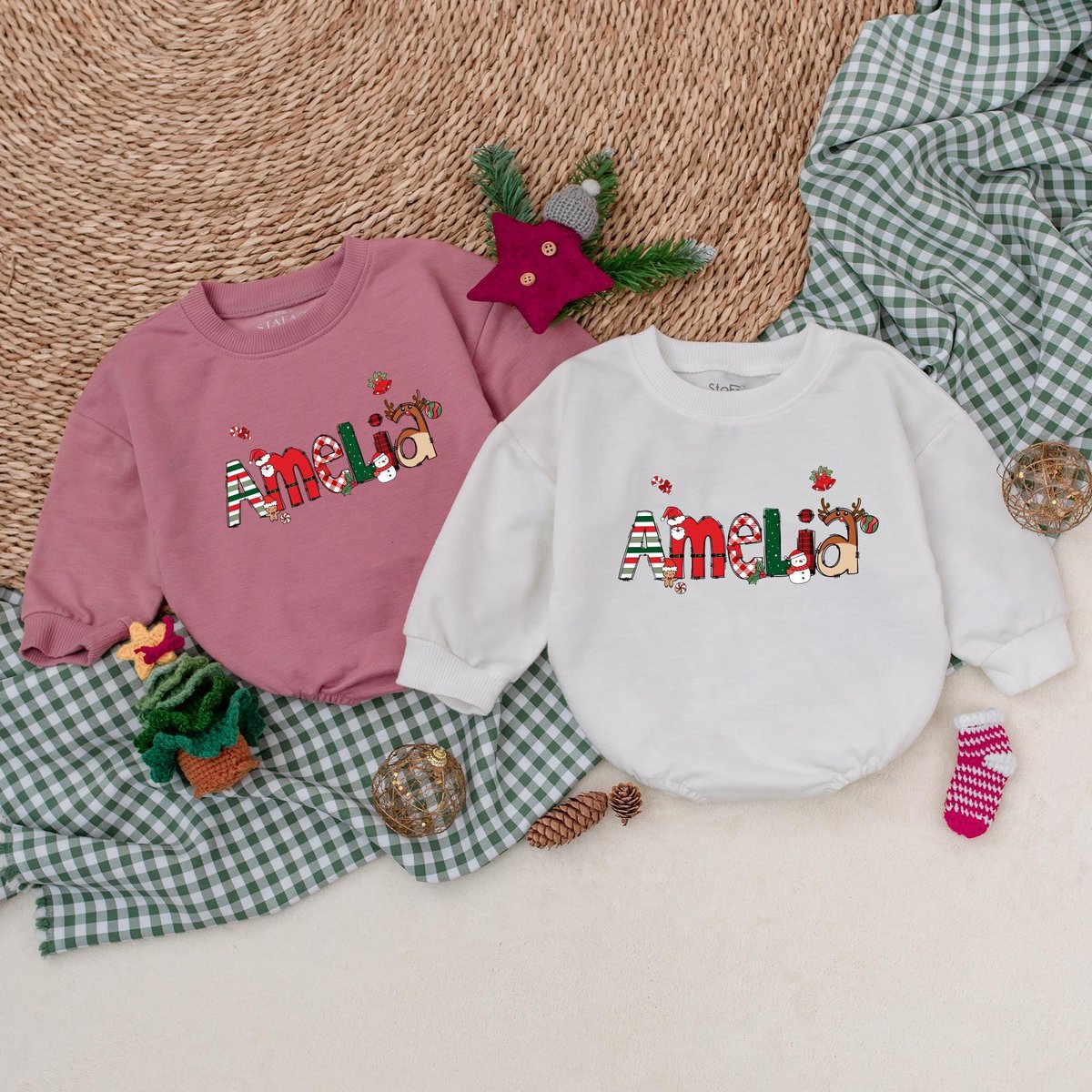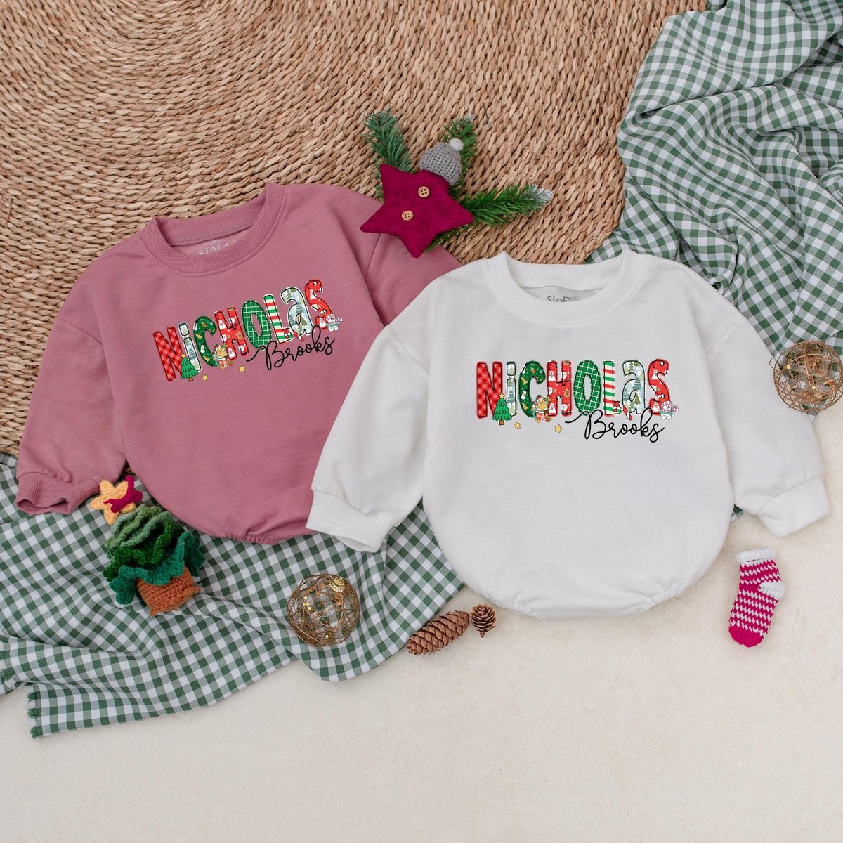 Custom Name Christmas Baby Bubble Romper Toddler Christmas Sweatshirt Romper Coming Home Outfit 1st 436