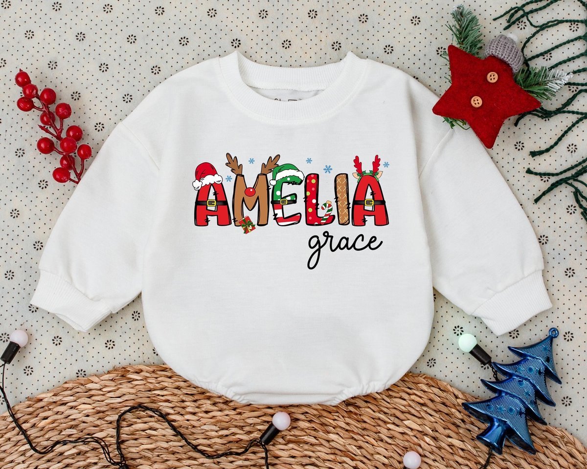 Custom Name Christmas Bubble Romper Cute Christmas Baby Bodysuit Name Christmas Bodysuit My First Ch