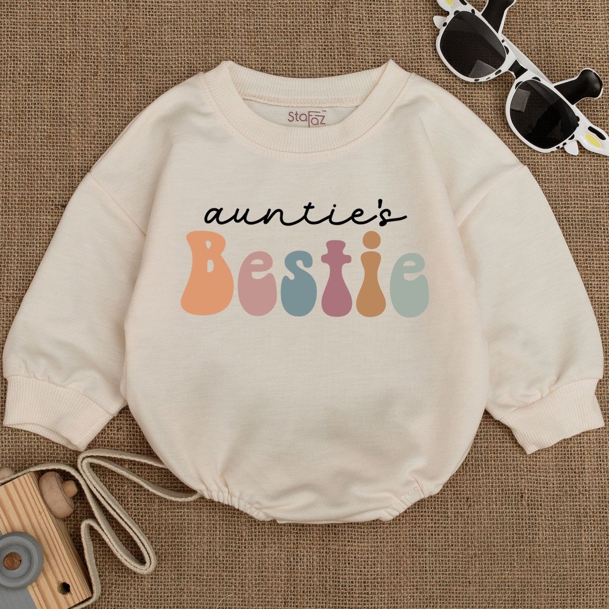 Retro Auntie’s Bestie Romper Baby Romper Newborn Romper Gift from AuntPregnancy AnnouncementAuntie 159