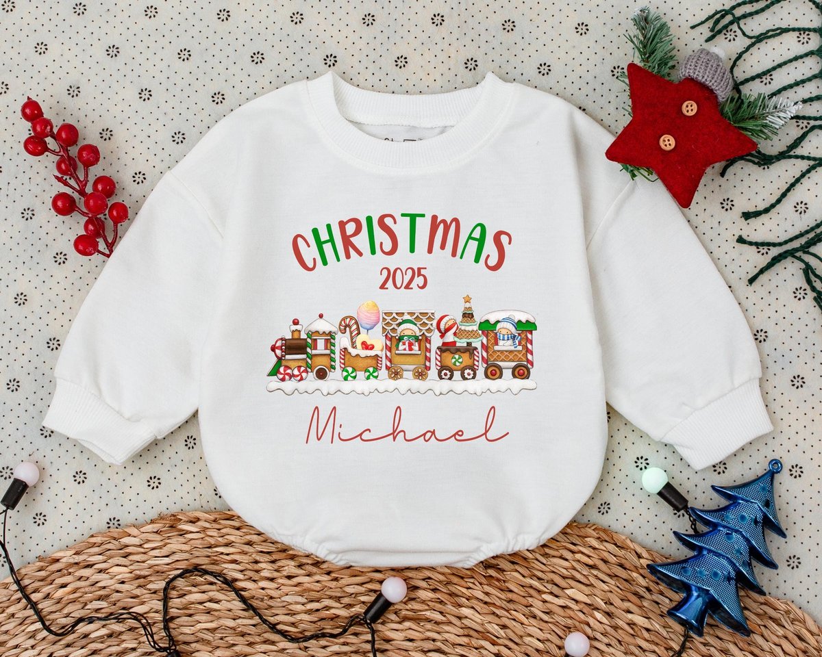 Custom Name Christmas Train Bubble Romper Custom Christmas Train Babysuit Custom Christmas Baby Outf