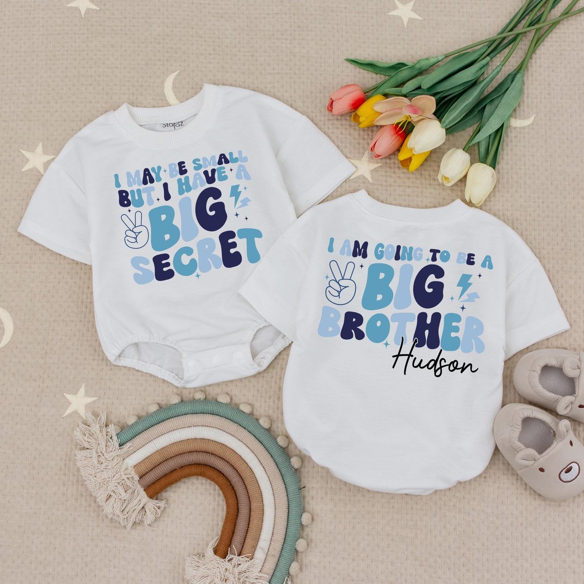 Custom Name I May Be Little But I Have A Big Secret Big Bro Bubble Romper Baby Announcement Gift Tre