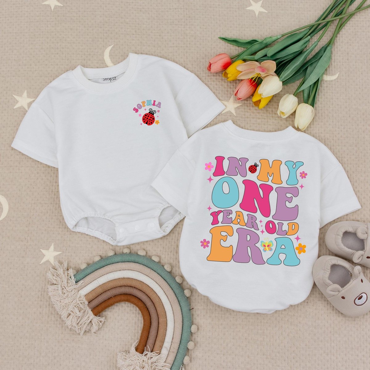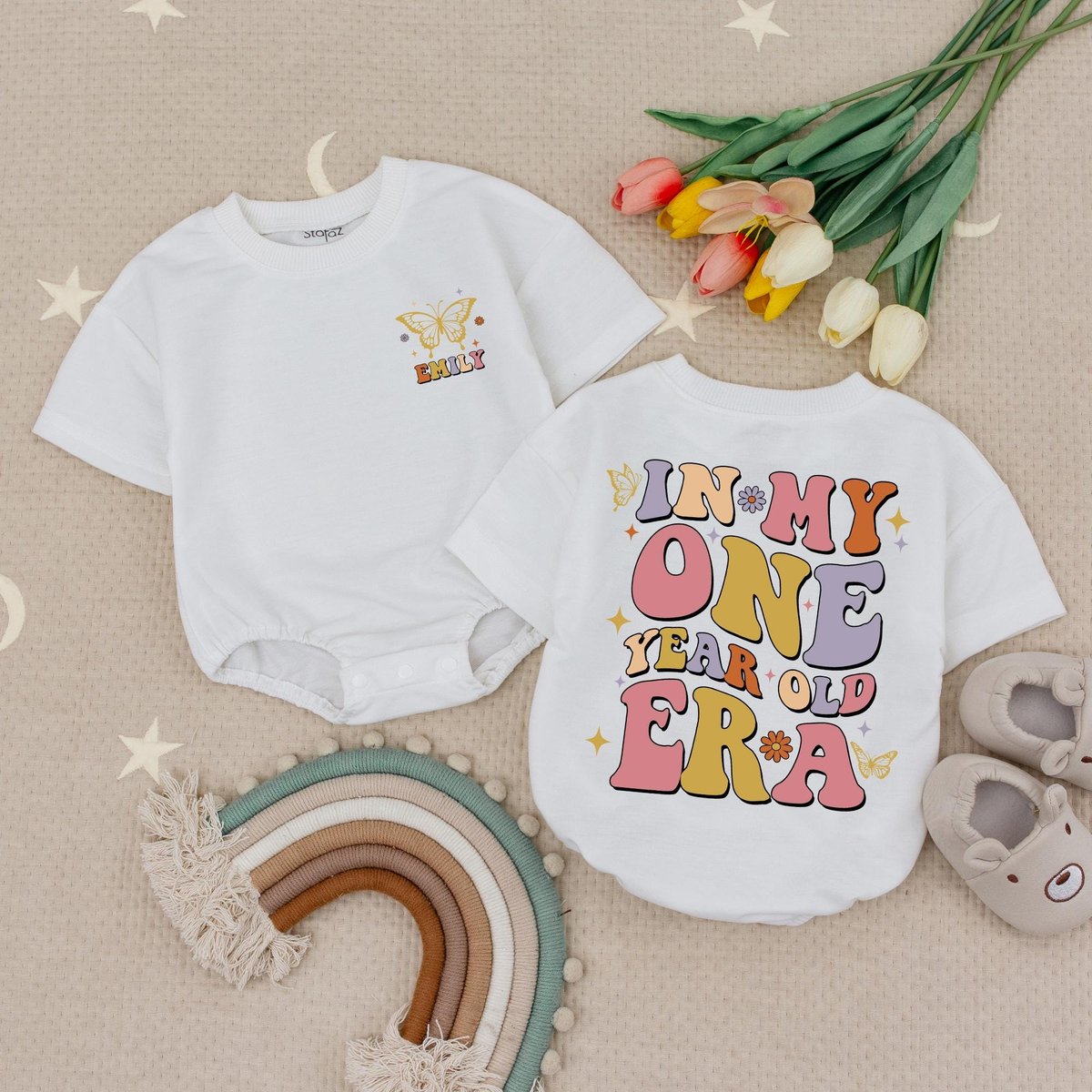 Custom Name In My One Year Old Era Baby Romper Personalized 1st Birthday OutfitBaby Girl or Boy Body
