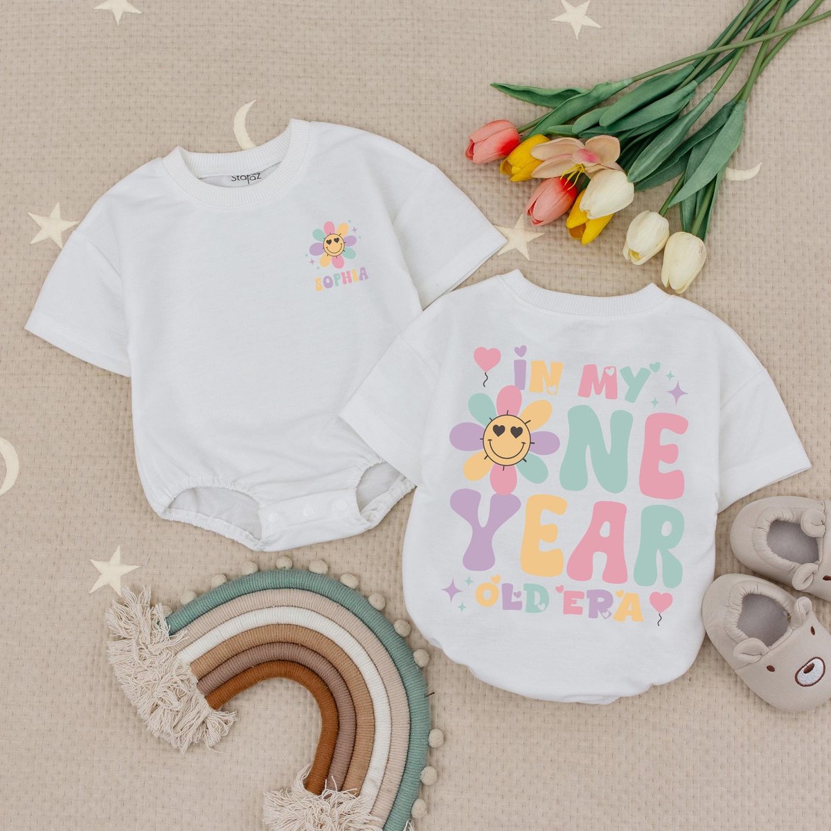 Custom Name In My One Year Old Era Birthday Smiley Face Baby Romper Personalized 1st Birthday Outfit