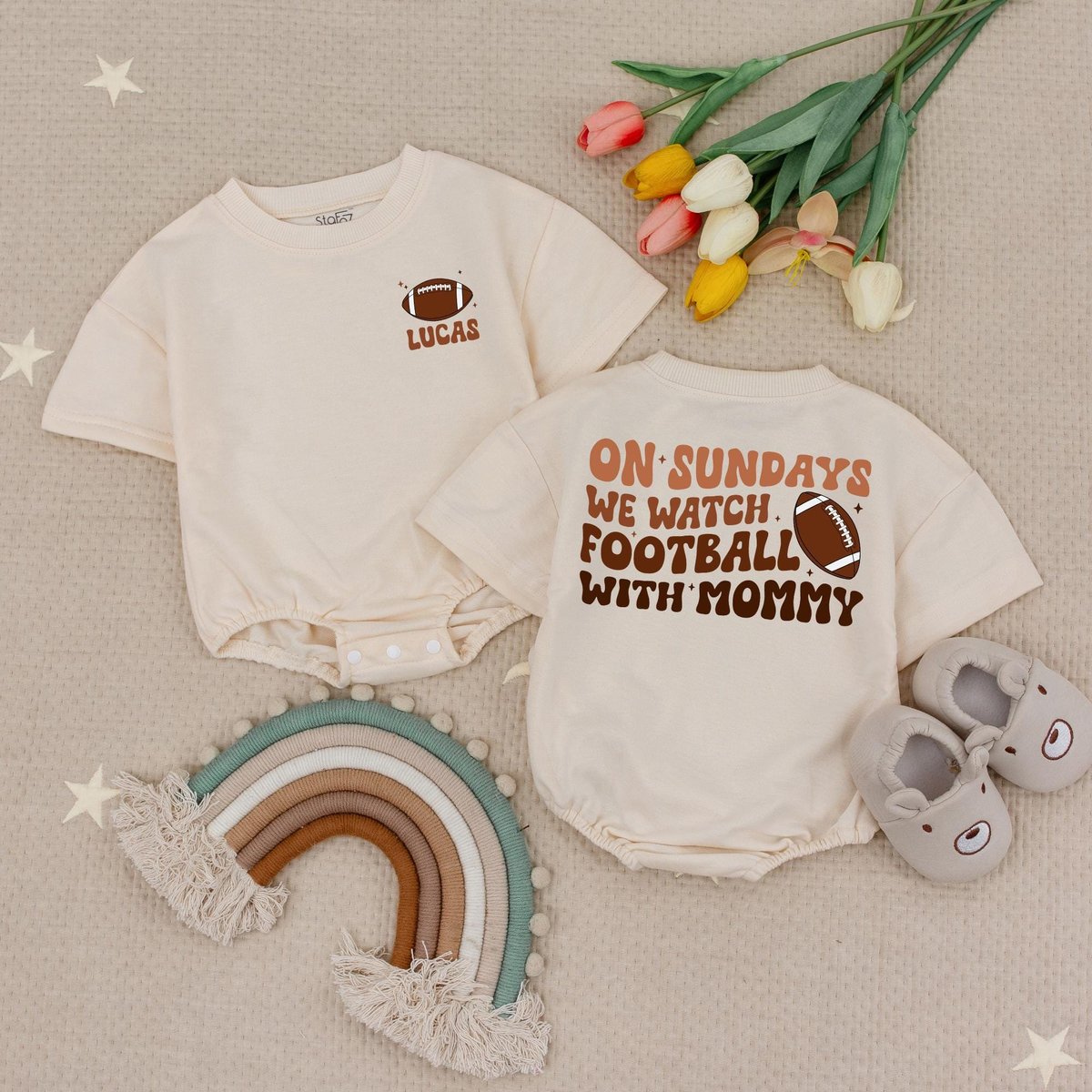 Custom Name On Sundays We Watch Football With Mommy Baby Romper Football Gameday Baby Outfit First F