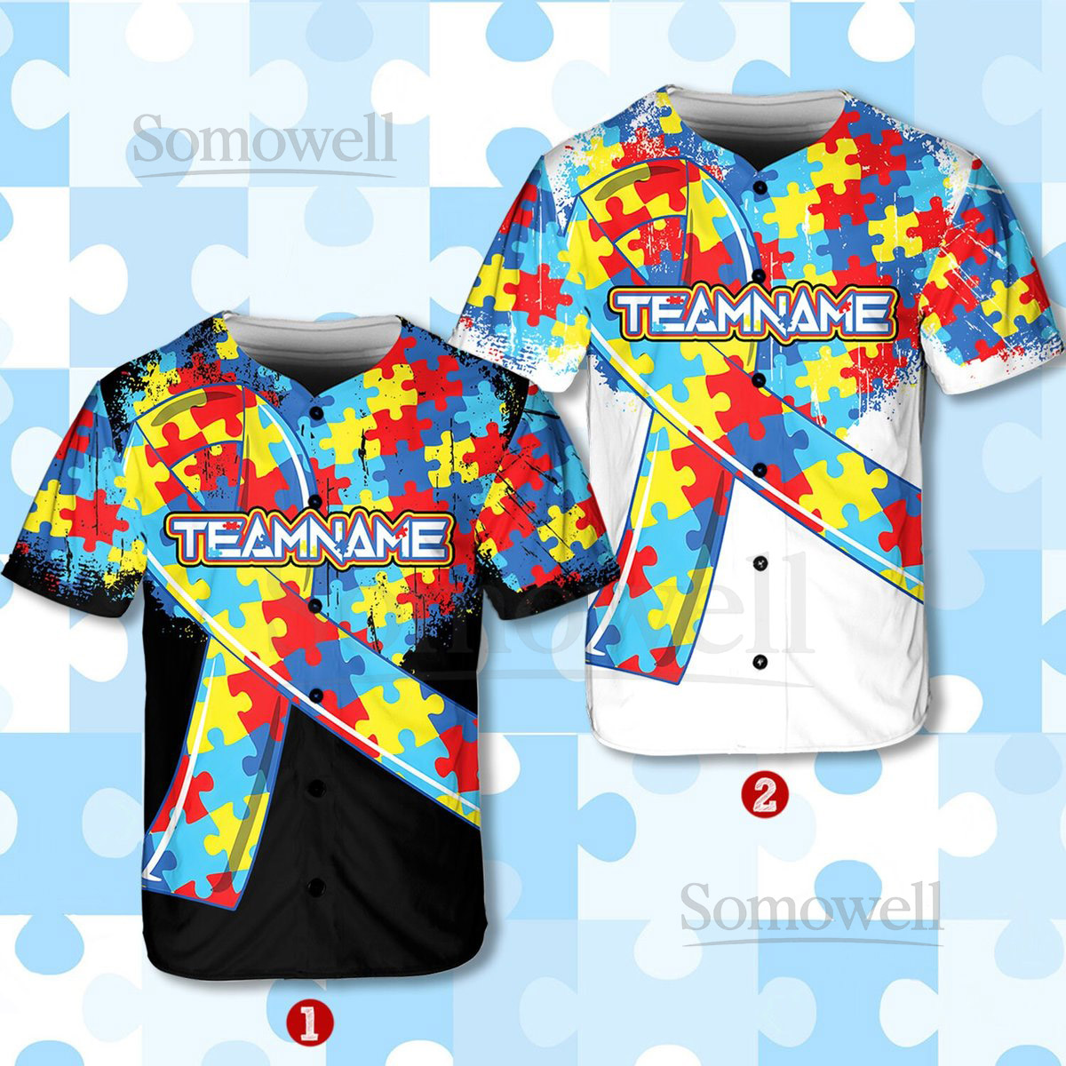 Personalized Autism Awareness Baseball Jersey Custom Name Puzzle Autism Baseball Jersey Autism Support Baseball Autism Ribbon Jersey_012