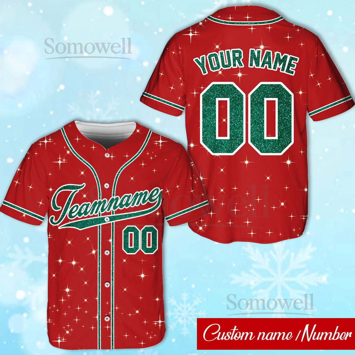 Personalized Glitter Baseball Jersey Custom Team Name And Number Baseball Jersey Christmas Jersey Gift For Family Matching Baseball Team_116