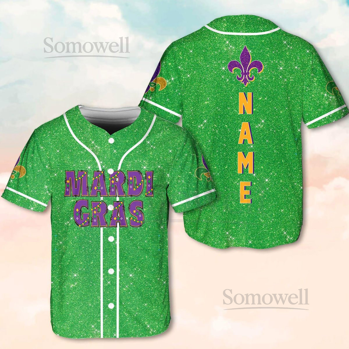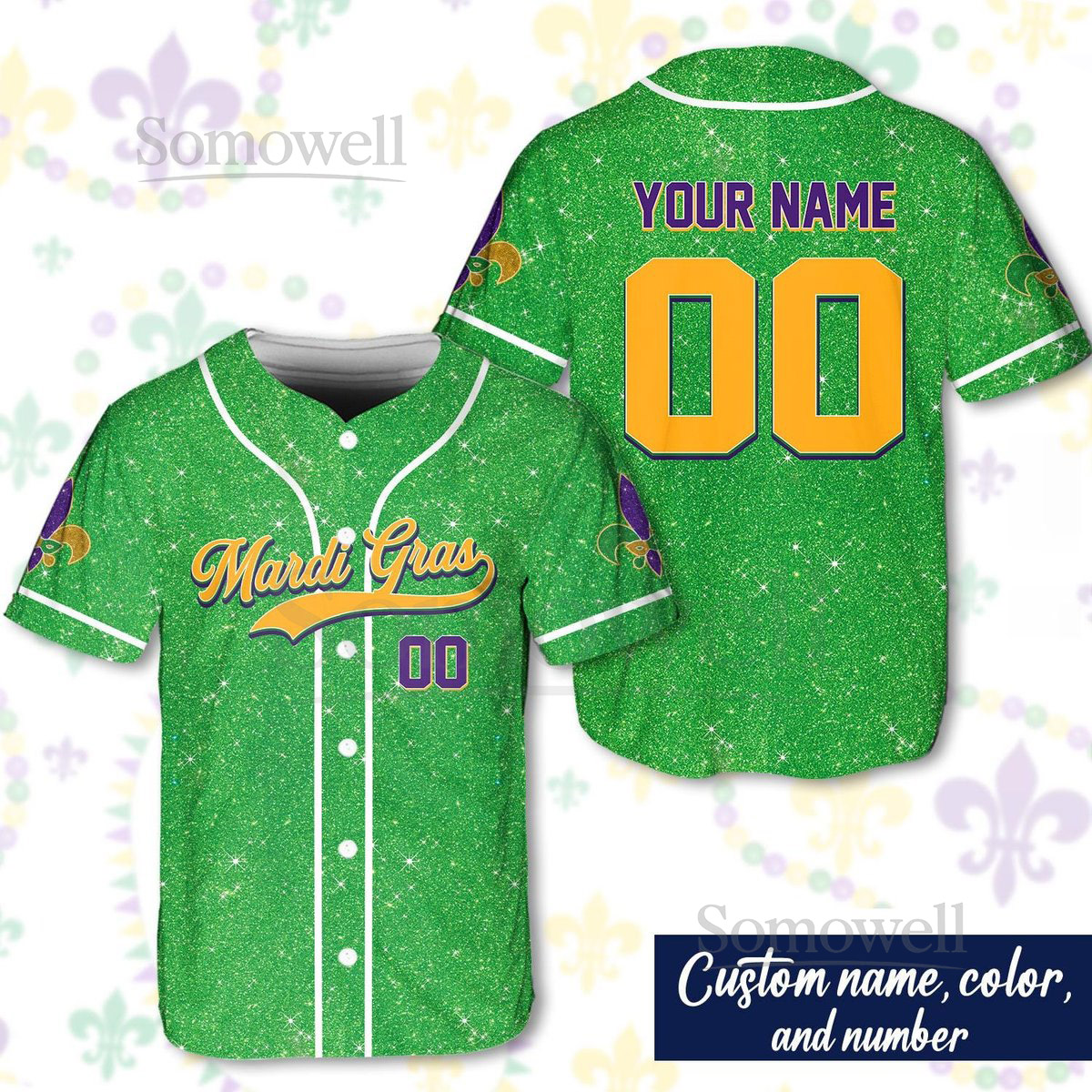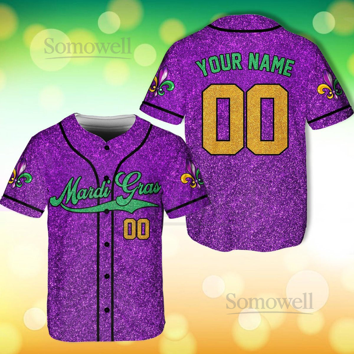 Personalized Glitter Mardi Gras Baseball Jersey Custom Glitter Mardi Gras Baseball Jersey Mardi Gras Carnival Jersey Printed Glitter_121
