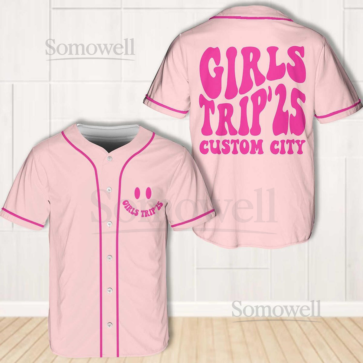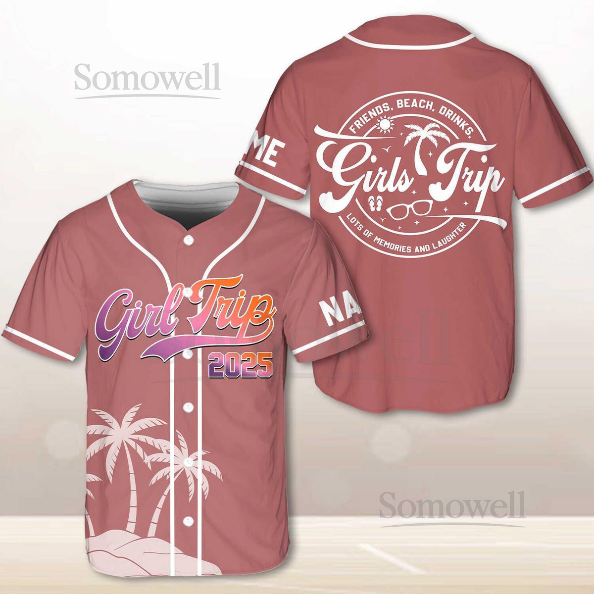 Personalized Girl Trip 2025 Baseball Jersey Custom Name Number Shirt for Girls Trip Vacation Shirt Cute VSCO Girls Trip Shirt_113