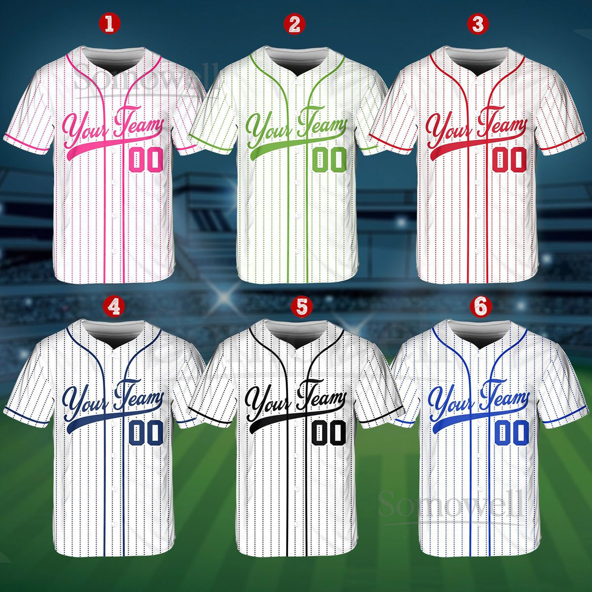 Personalized Team Name And Number Pinstripe Baseball Jersey Custom Stripe Line Color Baseball Jersey Baseball Jersey Uniform Baseball Fans_690