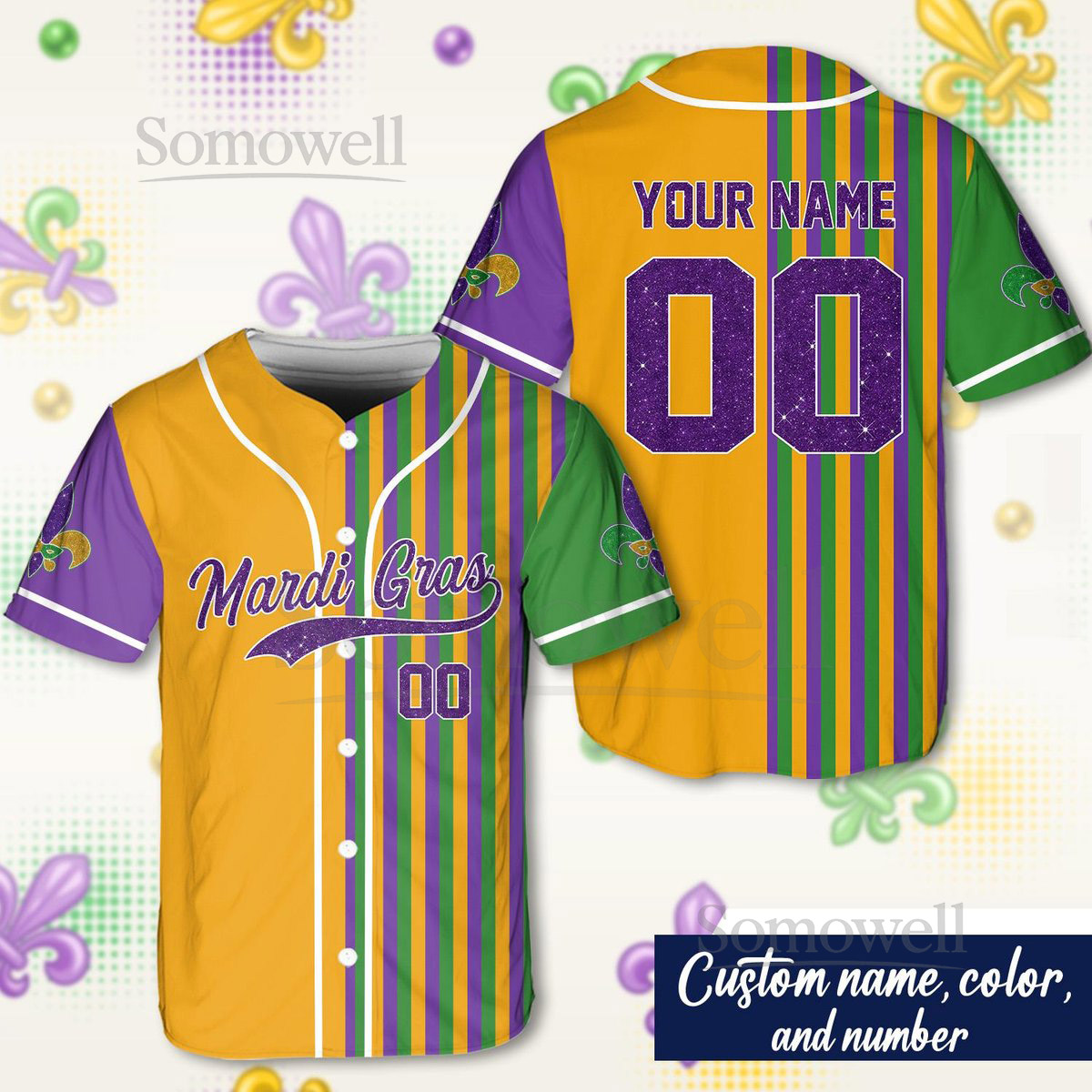 Personalized Mardi Gras Baseball Jersey Custom Name And Number Baseball Jersey Mardi Gras Carnival Jersey Gift For Family Matching_217