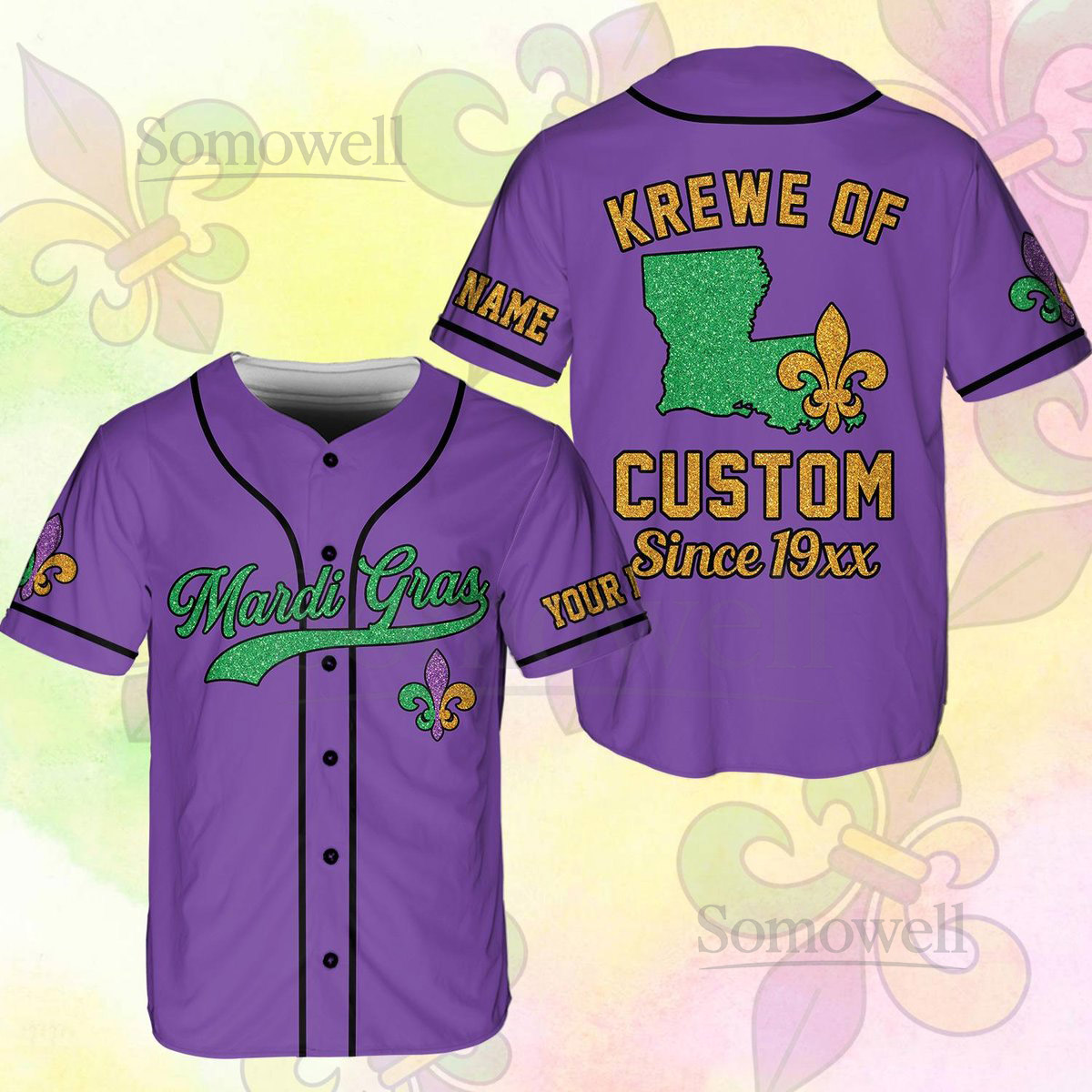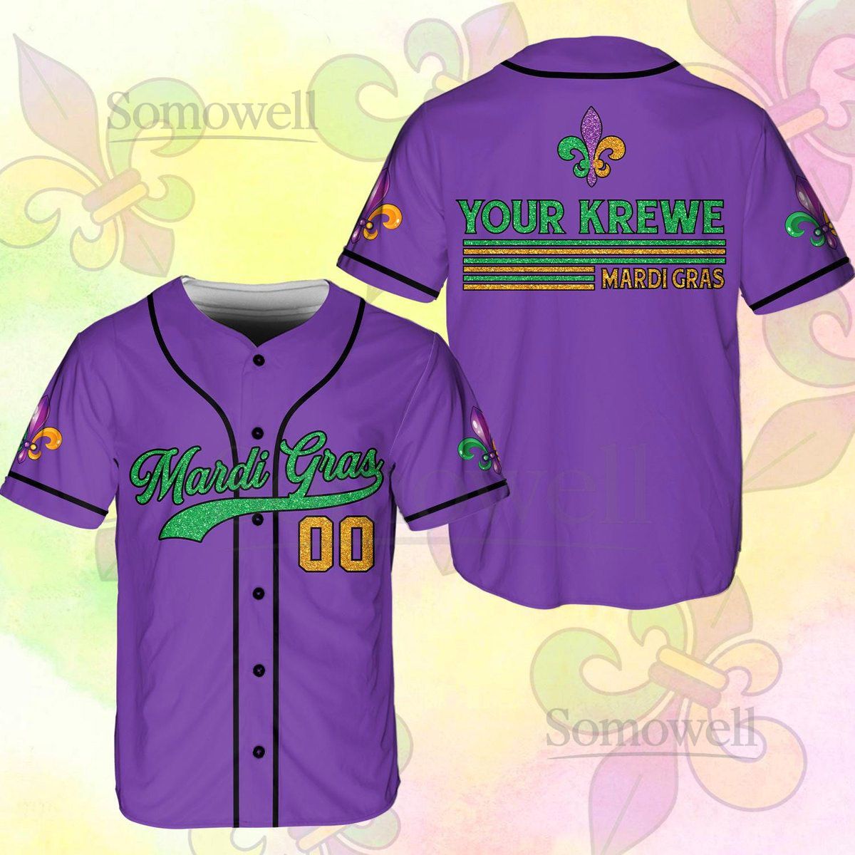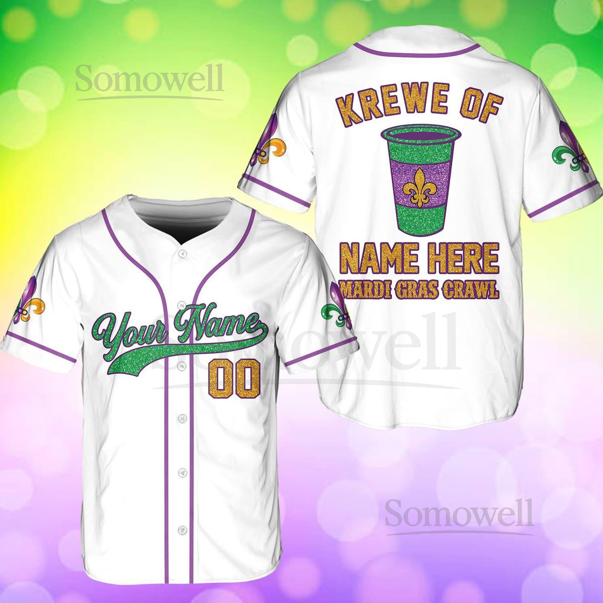 Personalized Mardi Gras Baseball Jersey Custom Krewe Name Number Mardi Gras Crawl Baseball Jersey Mardi Gras Team Jersey Family Matching_212