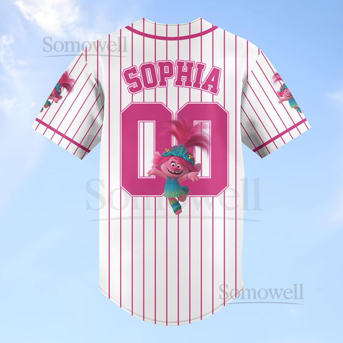 Custom Disney Trolls Poppy Striped Line Baseball Jersey Poppy Baseball Shirt For Kid Adult Disneyland Shirt Disney World Jersey_16