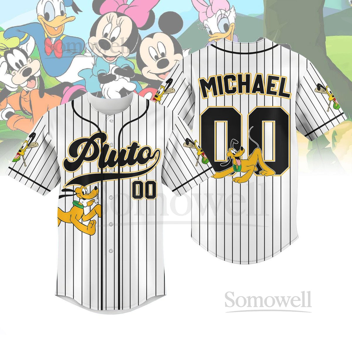 Disney Pluto Dog Striped Line Baseball Jersey Custom Pluto Baseball Shirt Disneyland Shirt Walt Disney World Jersey Cartoon Gift_58
