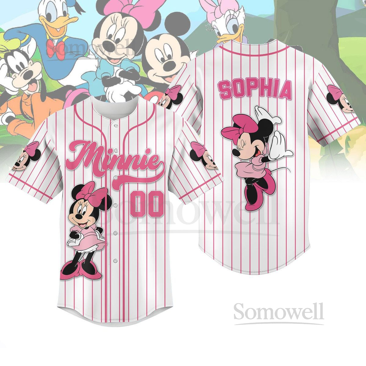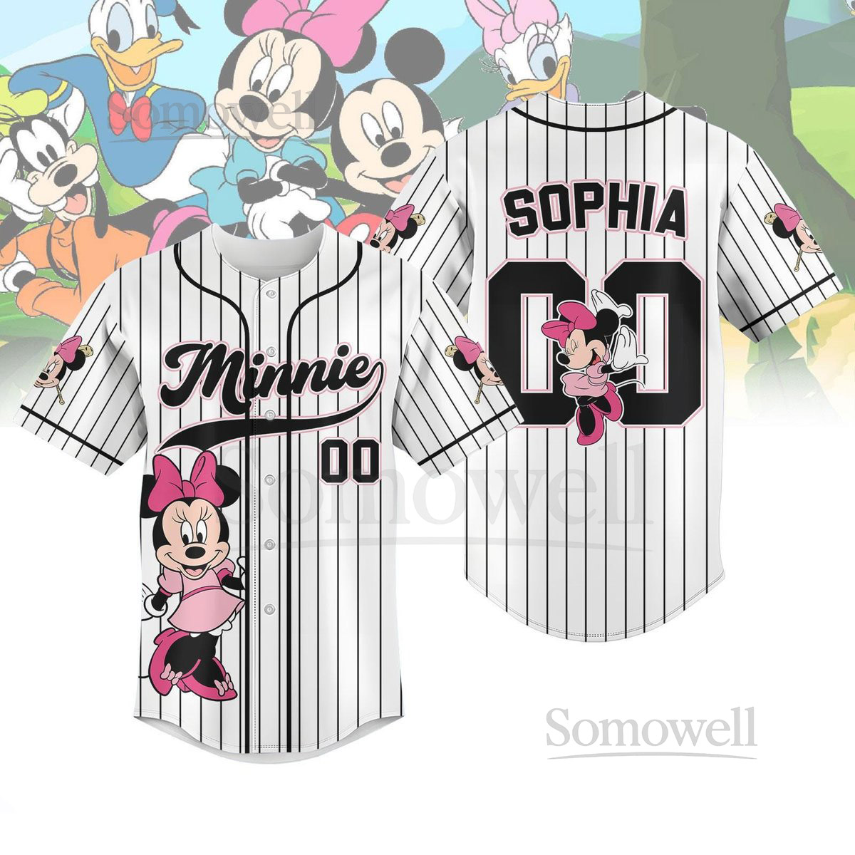 Disney Minnie Mouse Striped Line Baseball Jersey Custom Minnie Baseball Shirt Disneyland Shirt Walt Disney World JerseyCartoon Gift_56