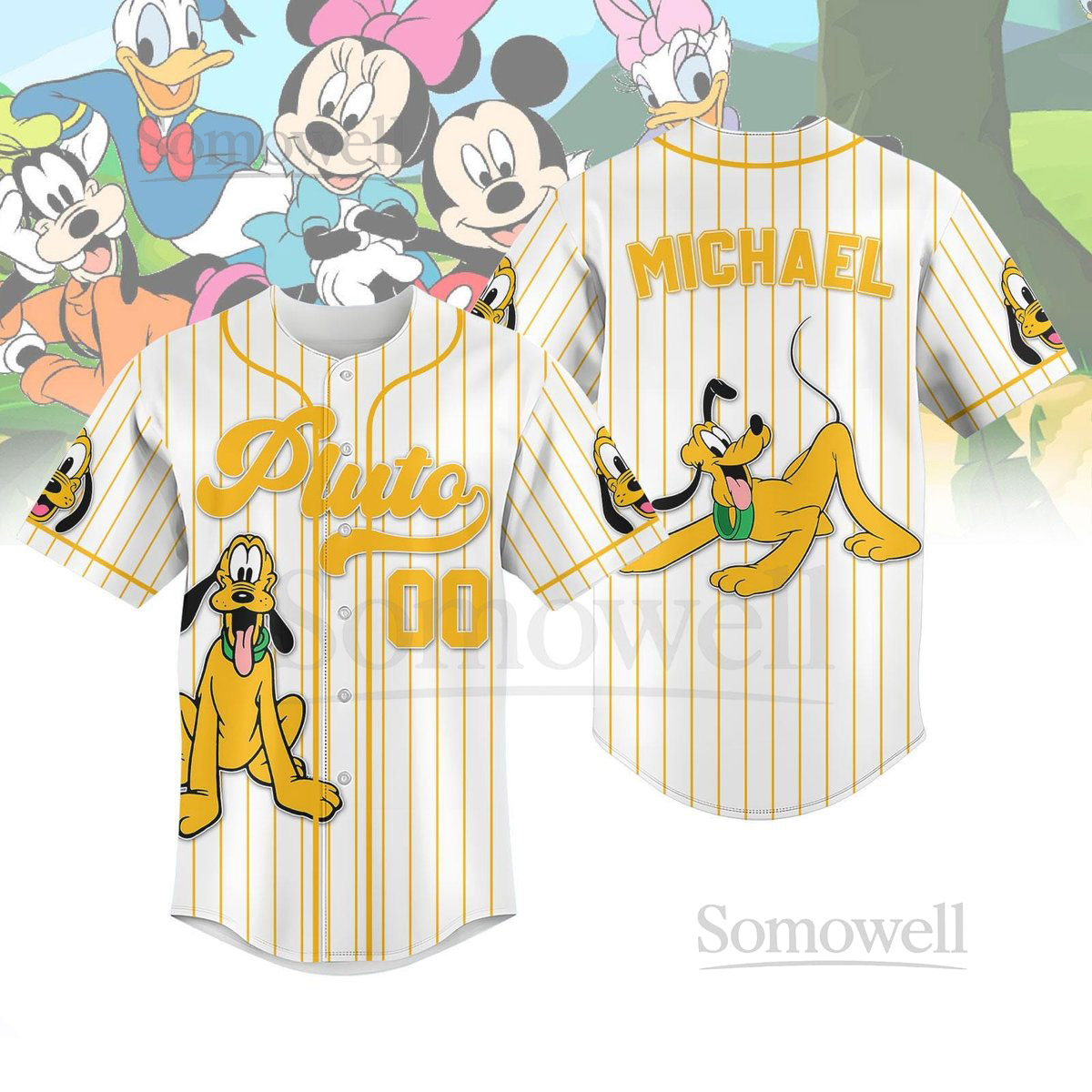 Disney Pluto Dog Striped Line Baseball Jersey Personalized Pluto Cartoon Baseball Shirt Disneyland Shirt Walt Disney World Jersey_59