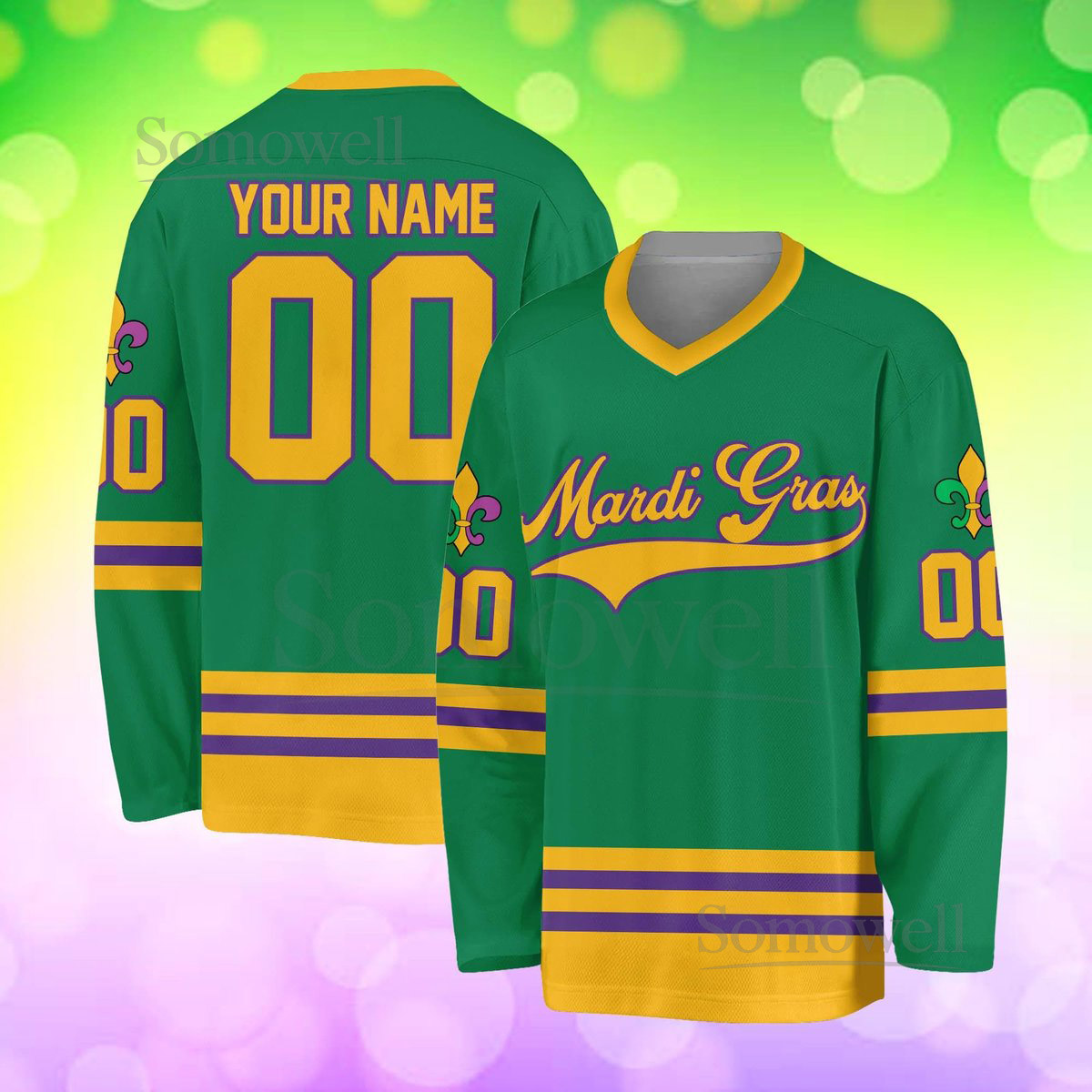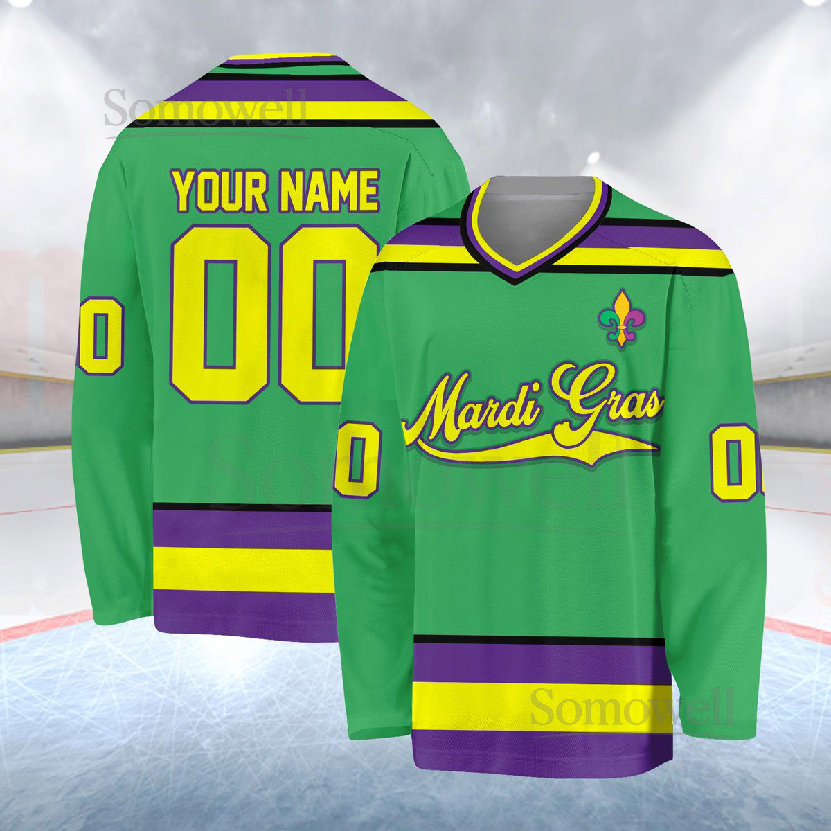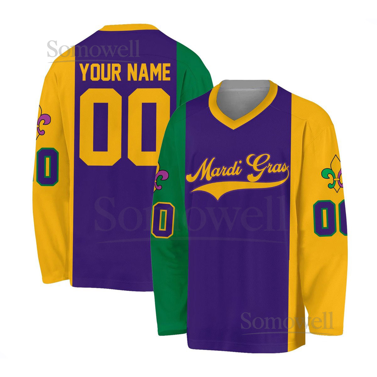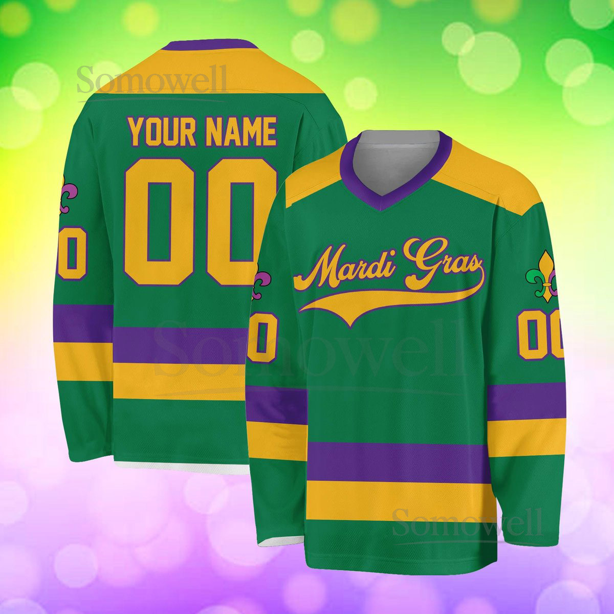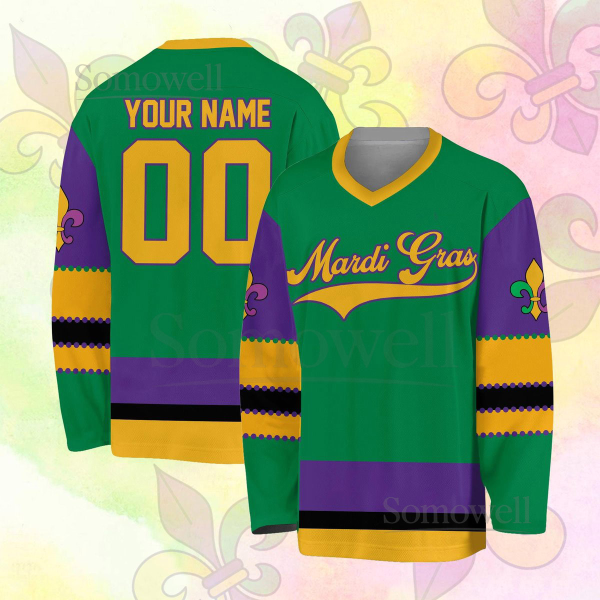 Personalized Mardi Gras Hockey Jersey Custom Name Mardi Gras Hockey Jersey Hockey Jersey Uniform For Hockey Fans Mardi Gras Outfit_276