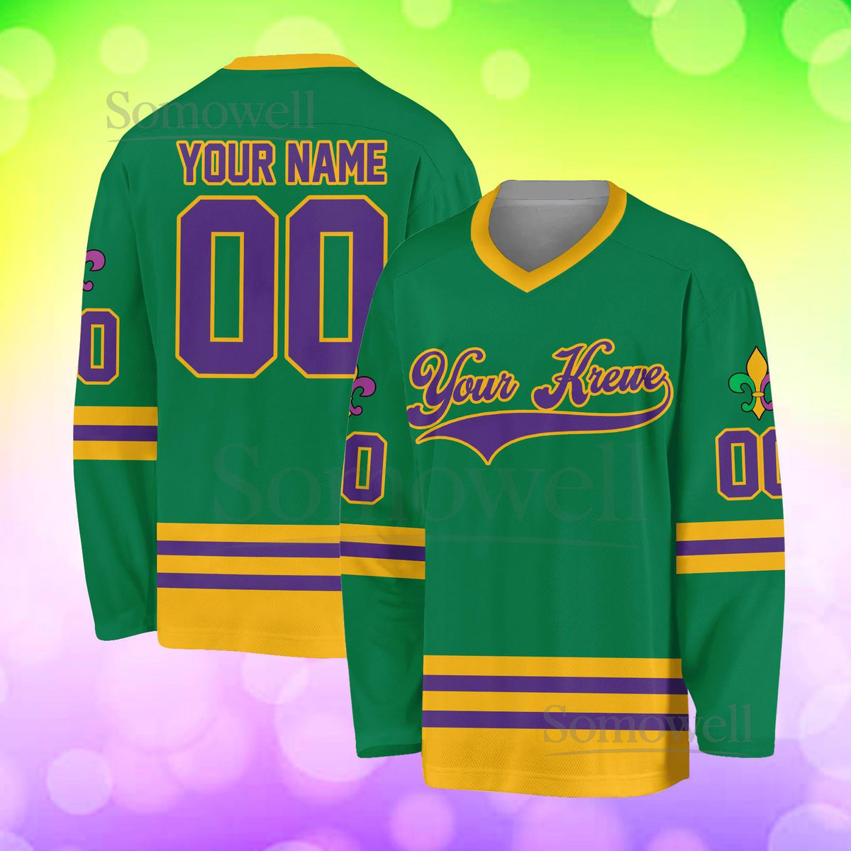 Personalized Mardi Gras Hockey Jersey Custom Your Krewe Name Number Hockey Jersey Hockey Jersey Uniform For Hockey Fans Mardi Gras Outfit_280