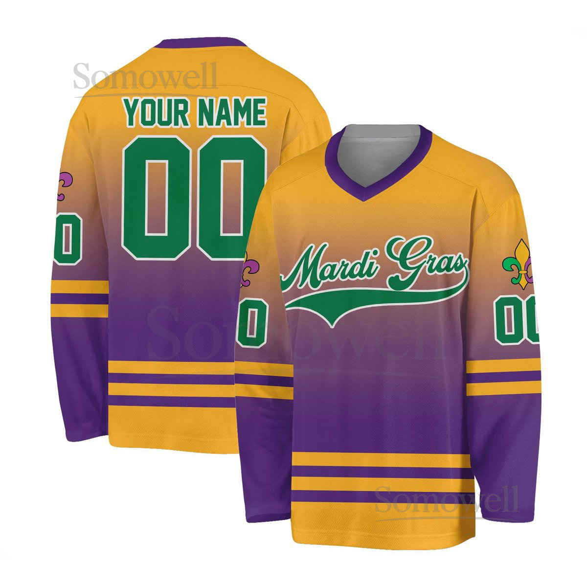 Personalized Mardi Gras Hockey Jersey Custom Name Mardi Gras Hockey Jersey Hockey Jersey Uniform For Hockey Fans Mardi Gras Outfit_272