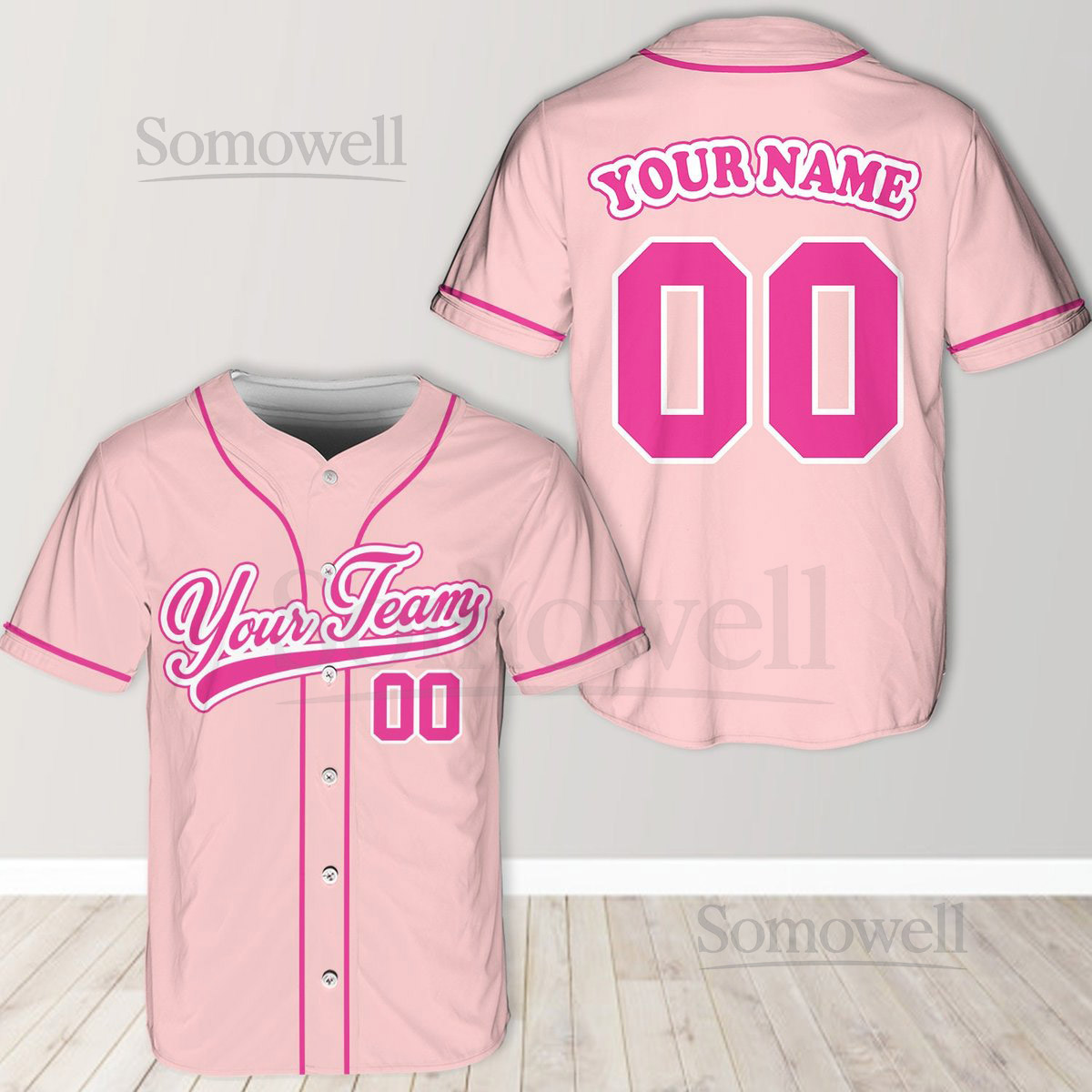 Personalized Team Name And Number Baseball Jersey Custom Pink Baseball Jersey Shirt Baseball Jersey Uniform For Baseball Fans Lovers_596