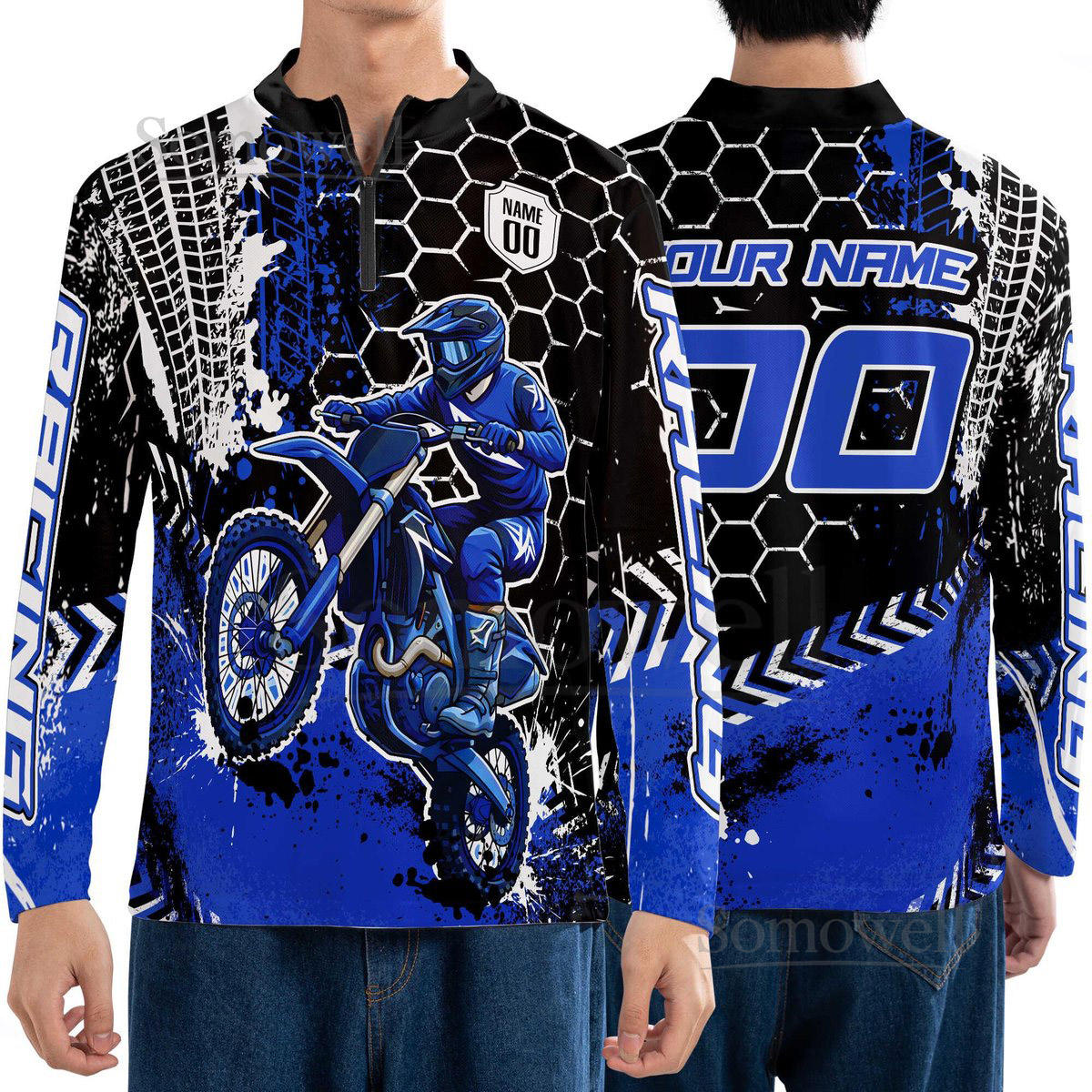 Personalized Motocross Zip Jersey Custom Dirt Bike Racing Shirt Long Sleeve Zip Jersey with Name Number Biker Gear for Riders Team_323