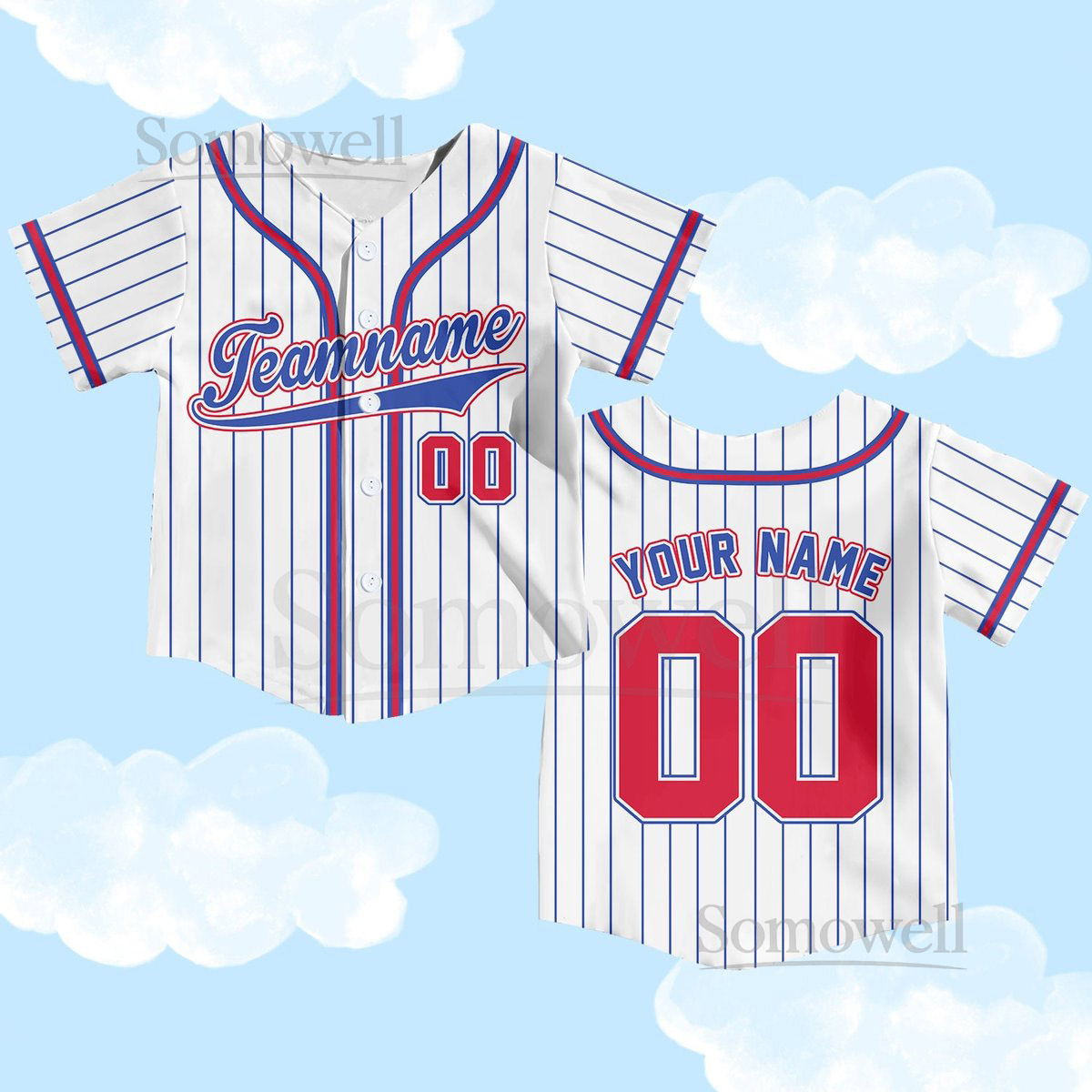 Personalized Name Number Pinstripe Baseball Jersey Custom Stripe Line Kid Youth Baseball Jersey Baseball Jersey For Baseball Fans Lovers_336