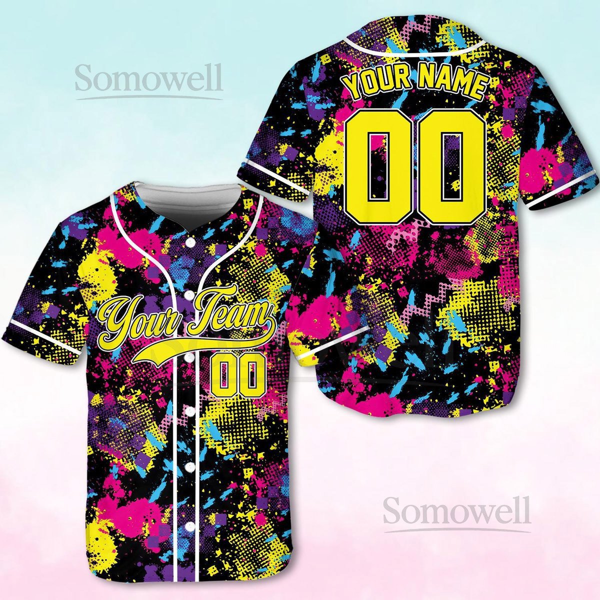 Personalized Paint Splatter Baseball Jersey for Adult Kid Youth Custom Name Number Neon Street Art Shirt Colorful Graffiti Team Shirt_338