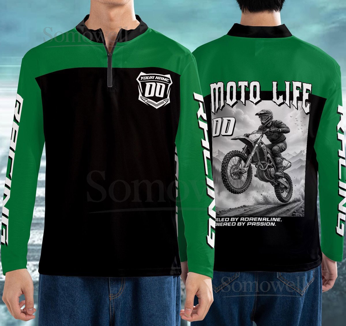 Personalized Photo Motocross Zip Jersey Custom Dirt Bike Racing Shirt Long Sleeve Zip Jersey with Name Number Photo Biker Gears_339