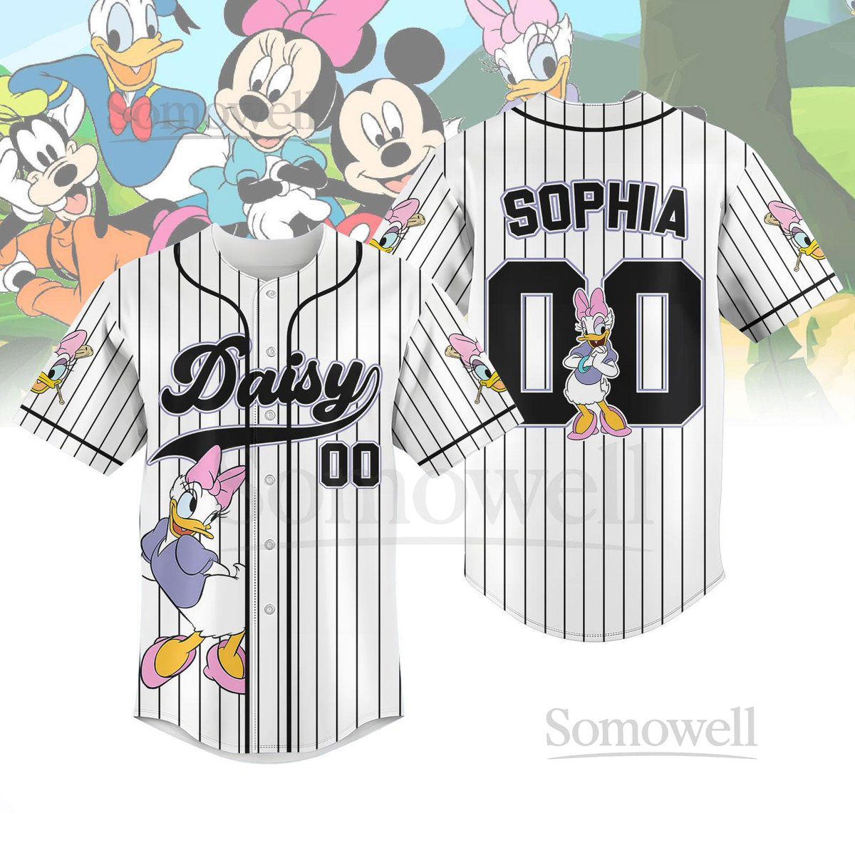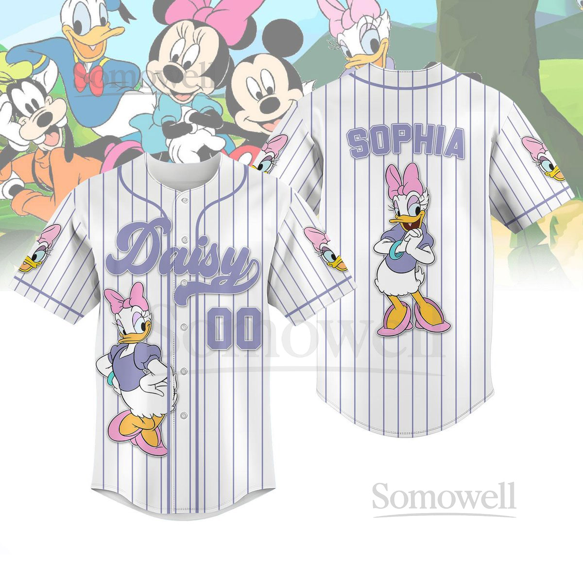 Disney Daisy Duck Striped Line Baseball Jersey Custom Daisy Baseball Shirt Disneyland Shirt Walt Disney World Jersey Cartoon Gift_48