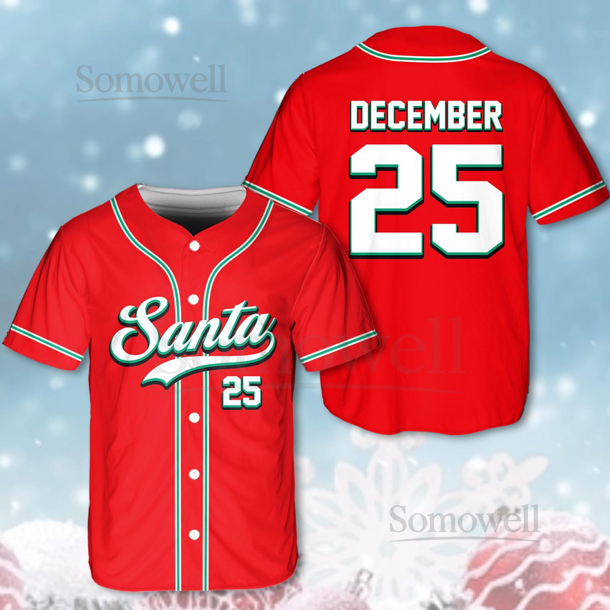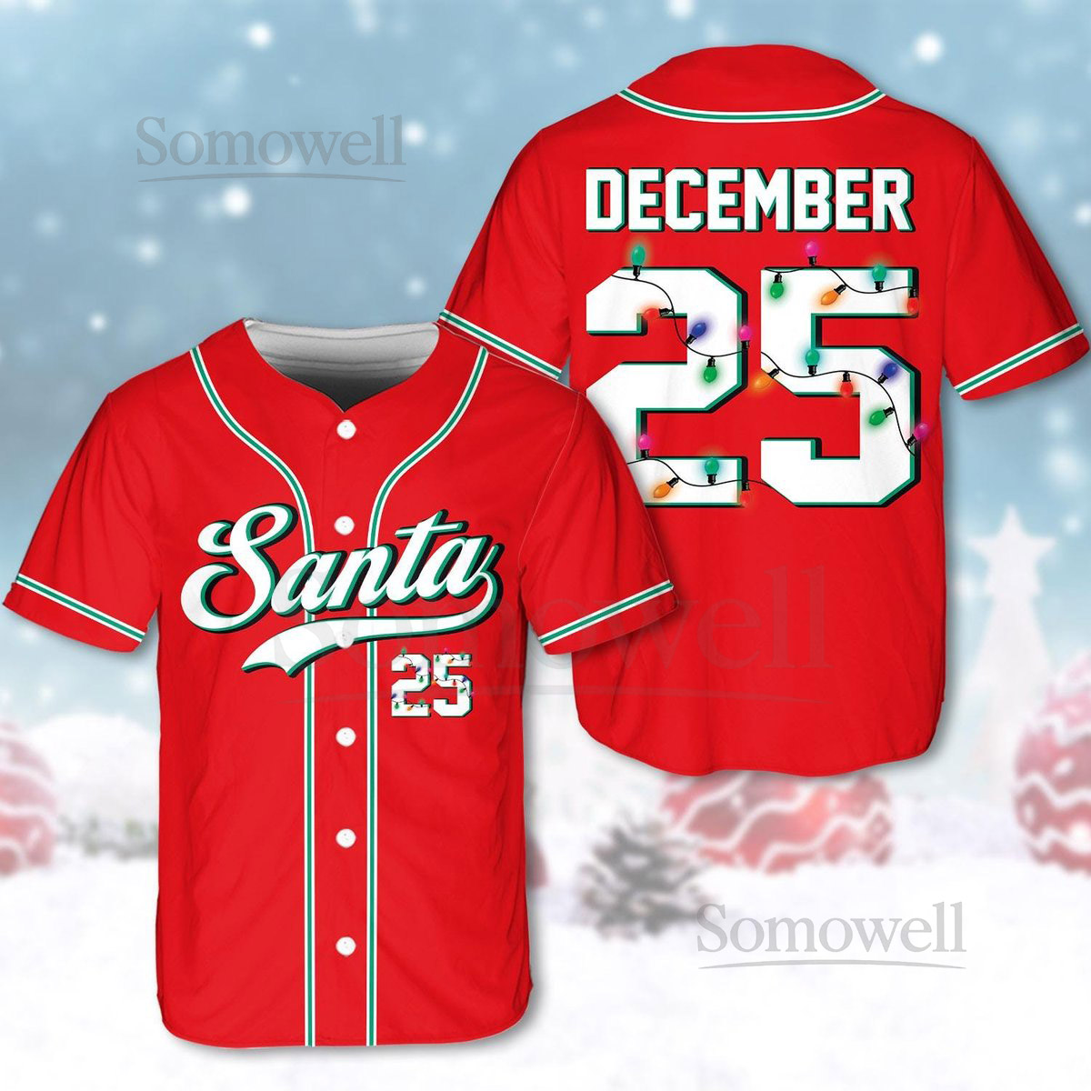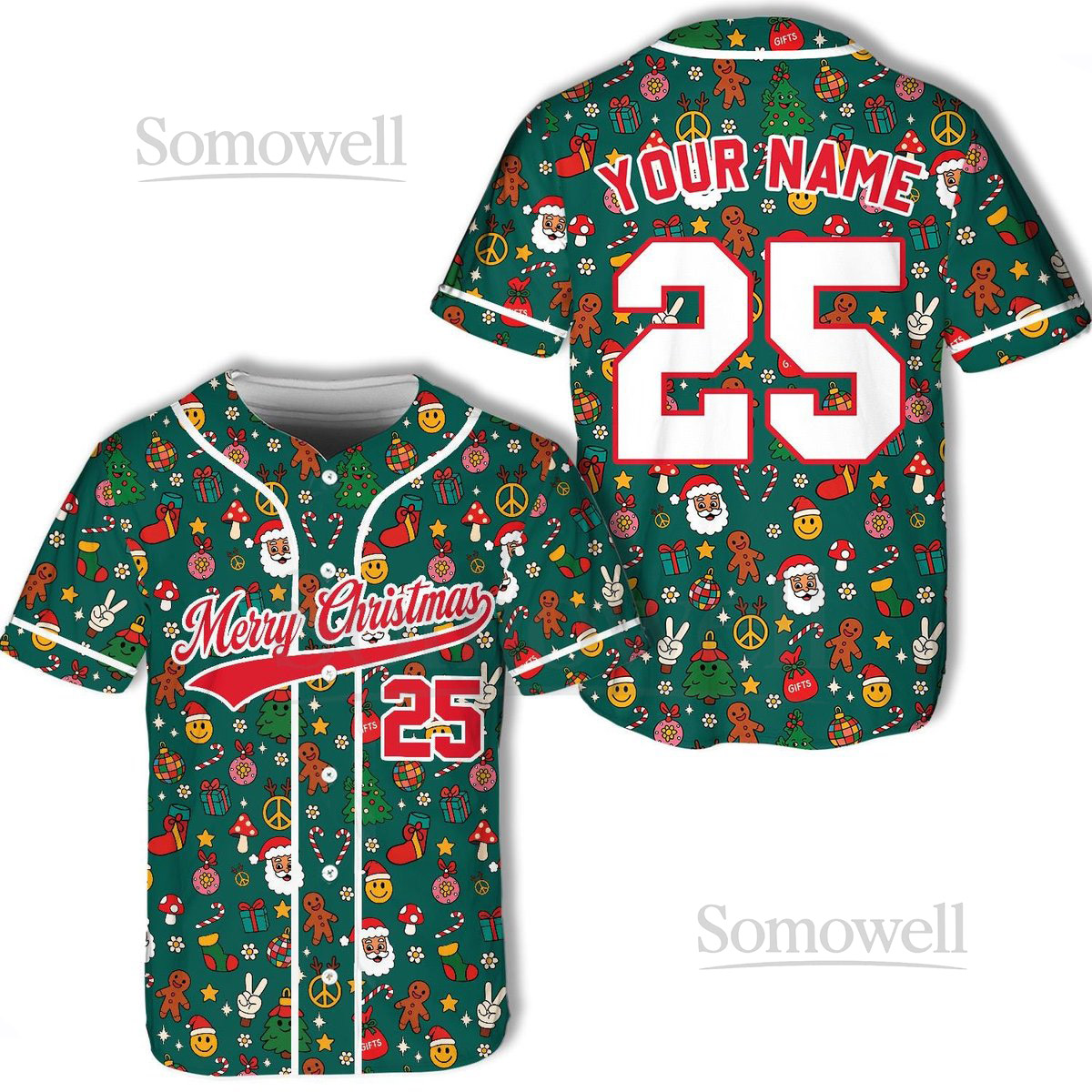 Personalized Christmas Baseball Jersey Adult Kid Youth Custom Name Number Holiday Jersey Funny Xmas Gift Team Uniform Santa Claus Shirt_057