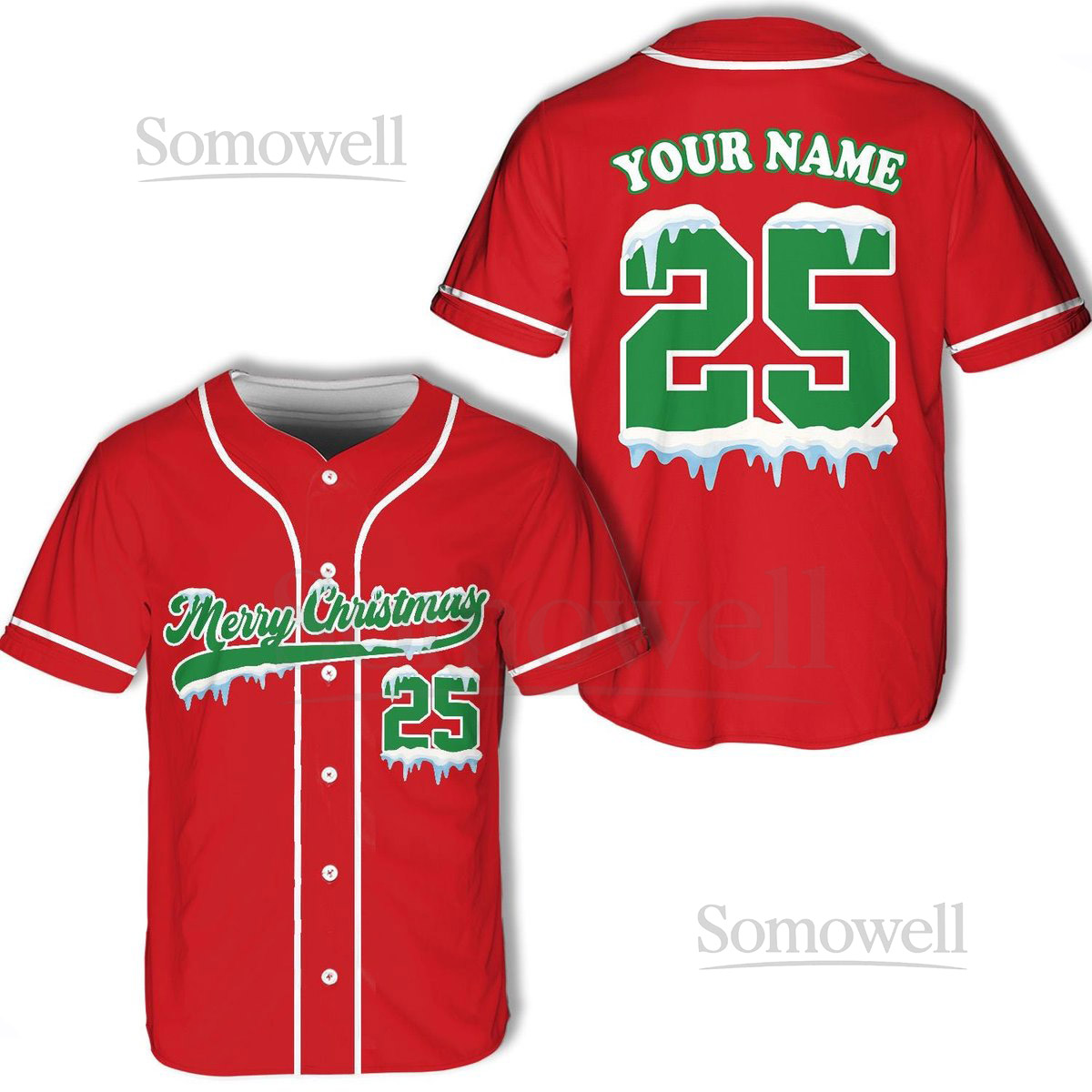 Personalized Christmas Baseball Jersey Adult Kid Youth Custom Name Number Holiday Jersey Xmas Gift Team Uniform Merry Christmas Shirt_062