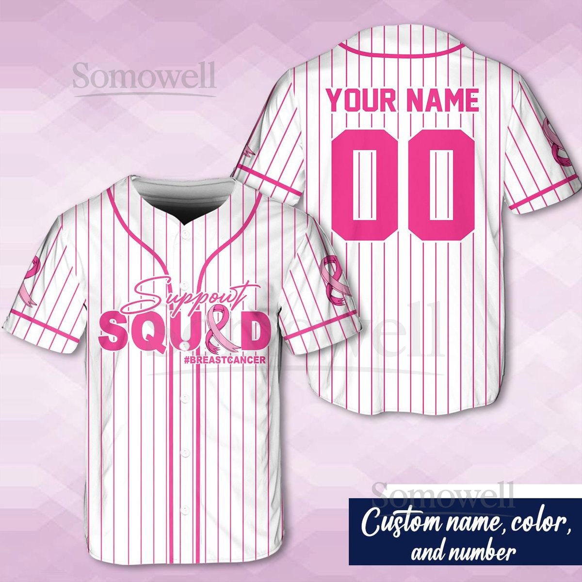 Personalized Breast Cancer Name And Number Baseball Jersey Custom Support Squad Baseball Jersey Pink Ribbon Breast Cancer Warrior Jersey_040