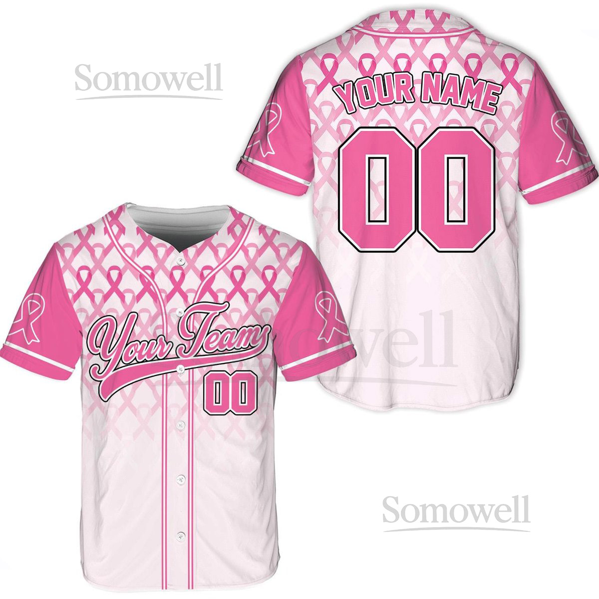 Personalized Breast Cancer Team Name And Number Baseball Jersey Custom Pink Ribbon Baseball Jersey Shirt Breast Cancer Warrior Jersey_045