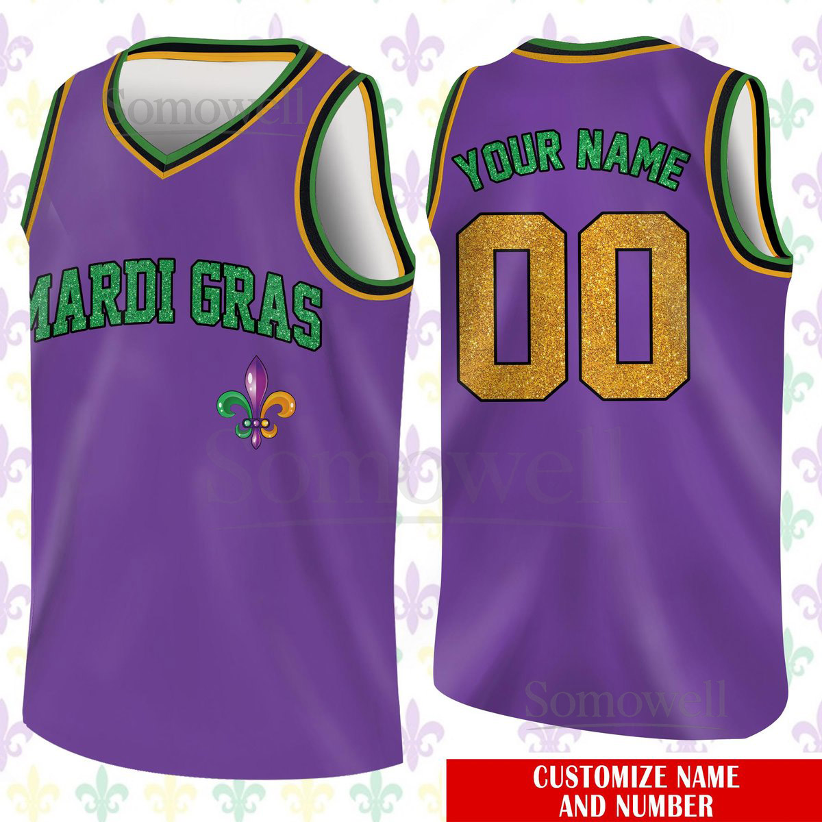 Custom Glitter Mardi Gras Basketball Jersey Team Name Number Basketball Jersey Team Basketball Jersey for Mardi Gras Printed Glitter_169