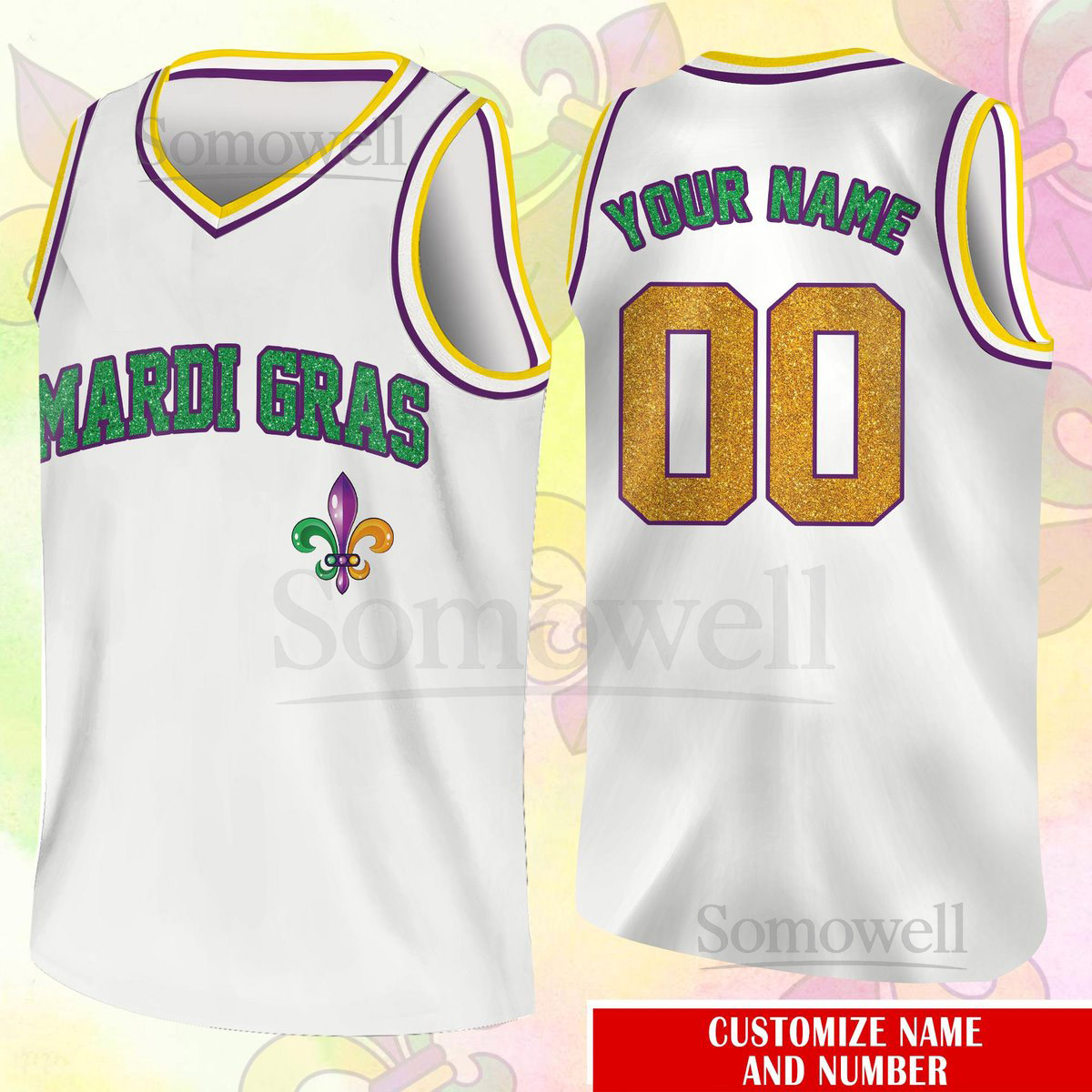Custom Glitter Mardi Gras Basketball Jersey Team Name Number Basketball Jersey Team Basketball Jersey for Mardi Gras Printed Glitter_168