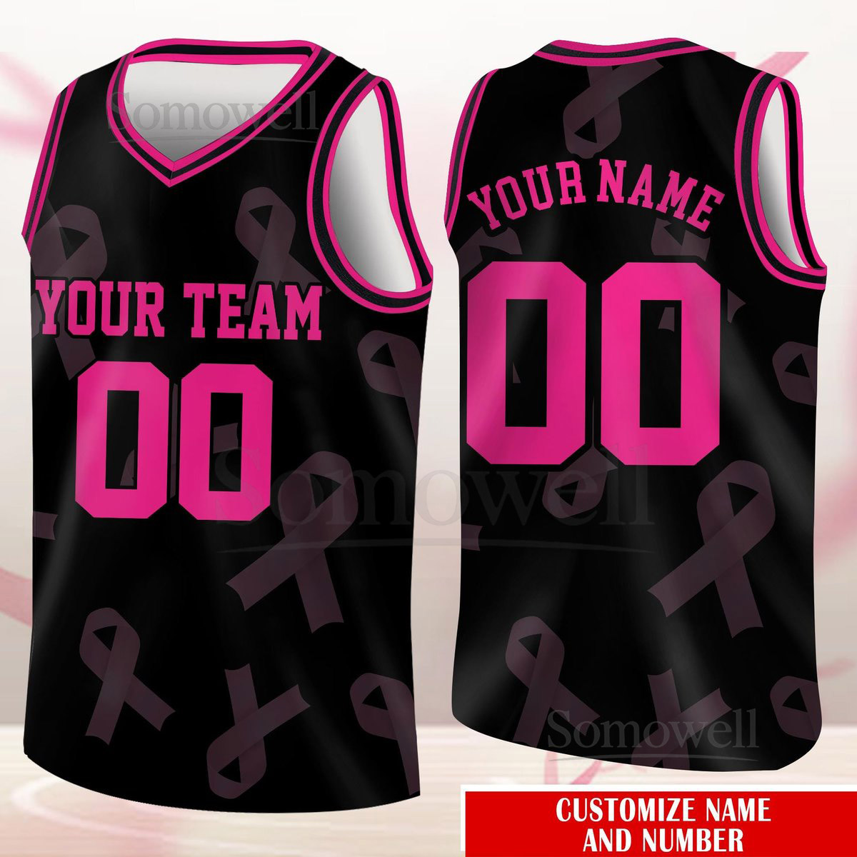 Custom Breast Cancer Basketball Jersey Name Number Personalized Breast Cancer Awareness Jersey Hope Jersey Pink Ribbon Jersey_142