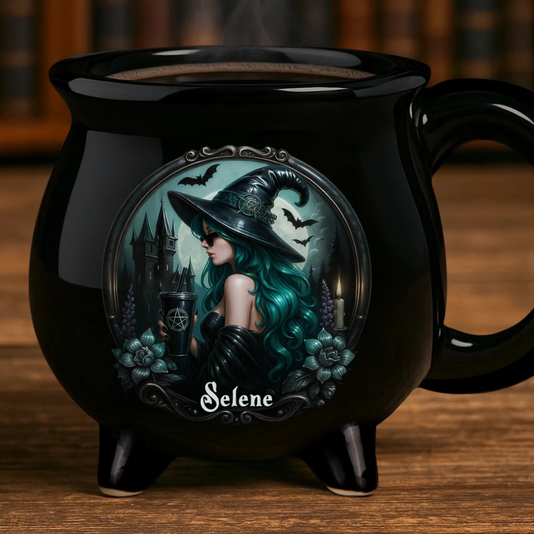 Custom 12oz Ceramic Cauldron Coffee Mug Witchy Gifts For Besties Sisters BFF Family Yourself Midnight Sorcery