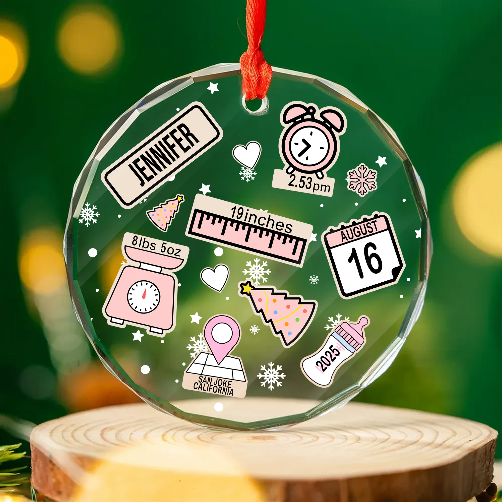 Personalized Baby’s First Christmas Stats Ornament – Faceted Glass – Baby Shower Gift for New Parents 2025-GLO-QITBS