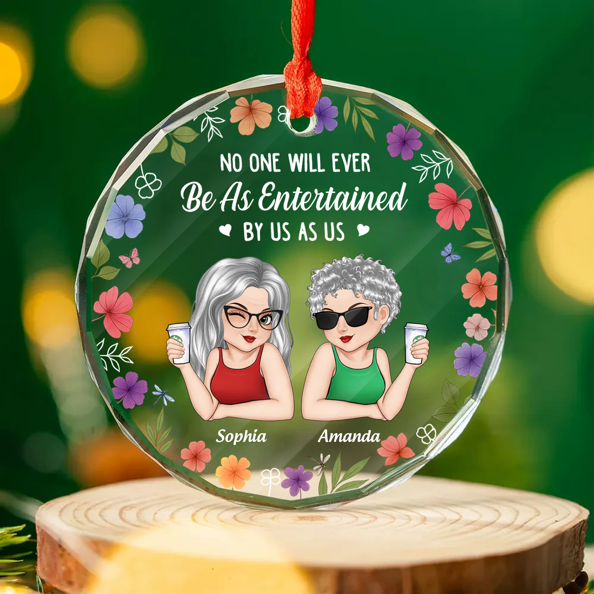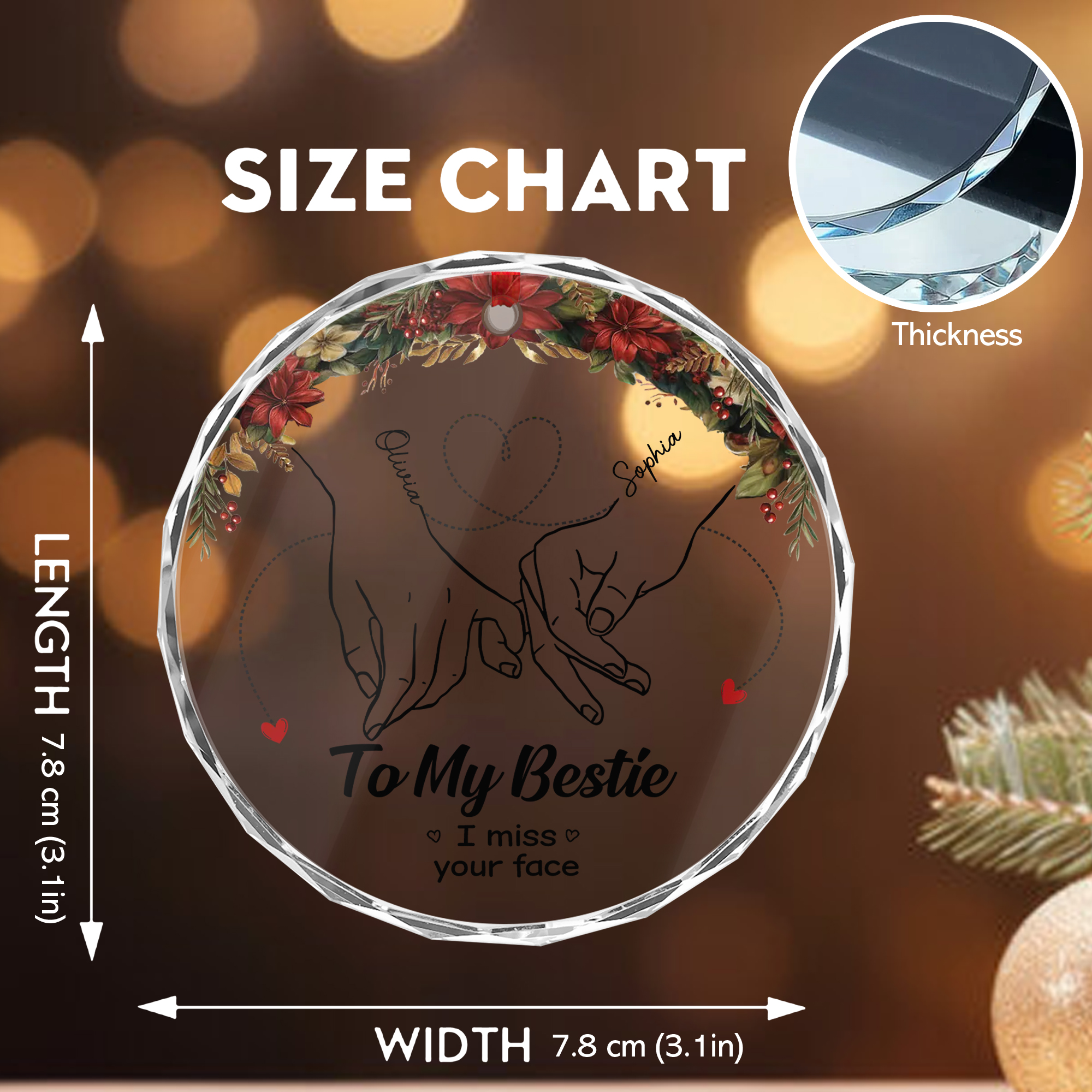 Personalized Best Friends Forever Ornament – Faceted Glass with Flowers – Christmas Gift for Besties 2025-GLO-S25A2