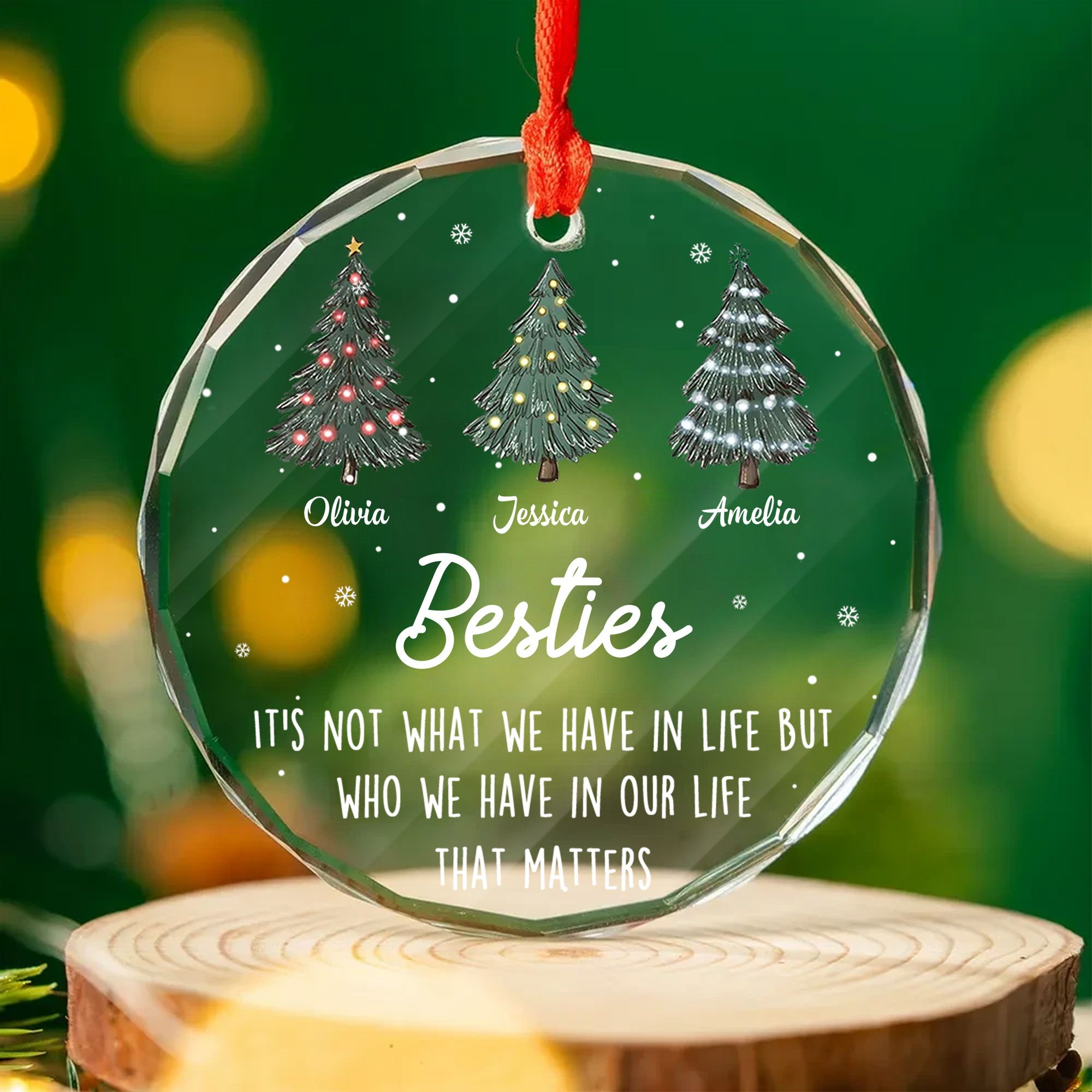 Personalized Best Friends Christmas Tree Ornament Custom Glass Keepsake Gift for Besties-GLO-5LLAL