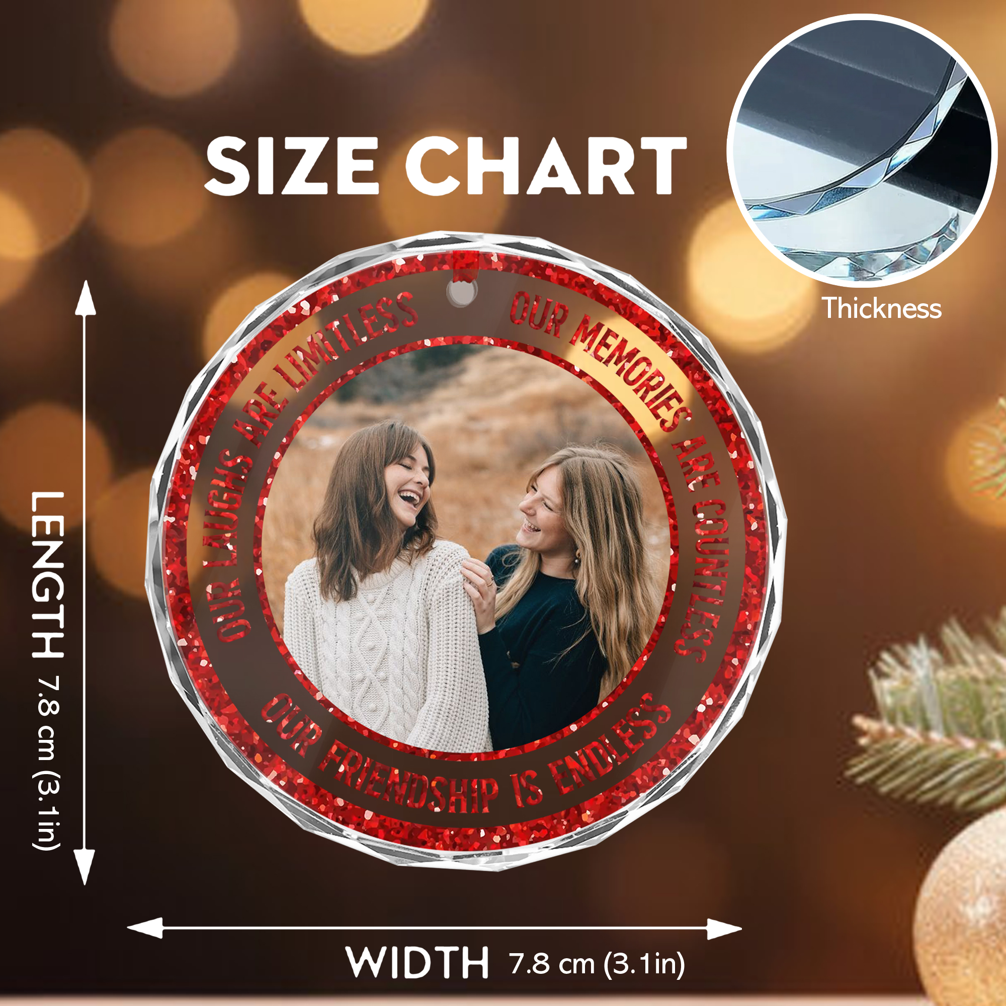 Personalized Best Friend Photo Ornament Custom Glass Friendship Keepsake Gift for Besties Christmas-GLO-ESOX7