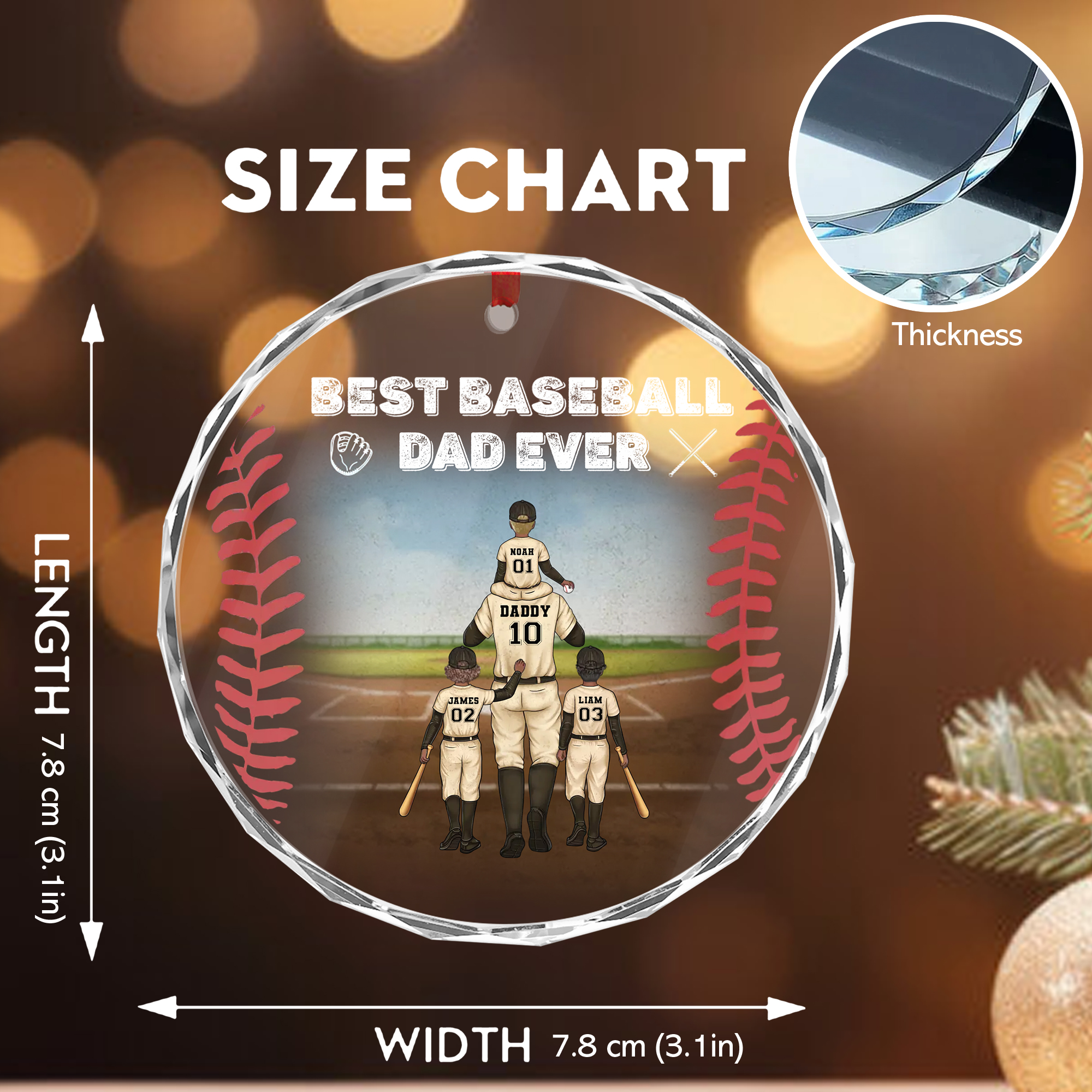 $18.95Personalized Best Baseball Dad Ever Ornament Acrylic Wood Style Christmas Gift for Dads-GLO-T538S Product Details: Thickness: 8mm Dimensions: 3×3 in (7.8×7.8 cm). Please allow slight variations (0.4-0.6 in) due to manual measurement. Material: Crafted from 100% clear glass with beveled edges for a sleek, polished look. Features: One-sided, vibrant UV-printed design that showcases bright, crisp […]